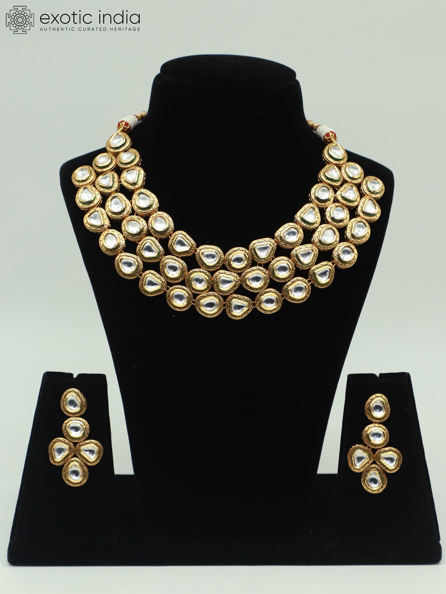Single Layer Stunning Necklace Set With Beautiful Earrings And Kundan Stone