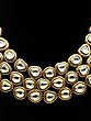 Kundan Studded Three Layered Necklace Set with Earrings and Mangtika with Beads Drop