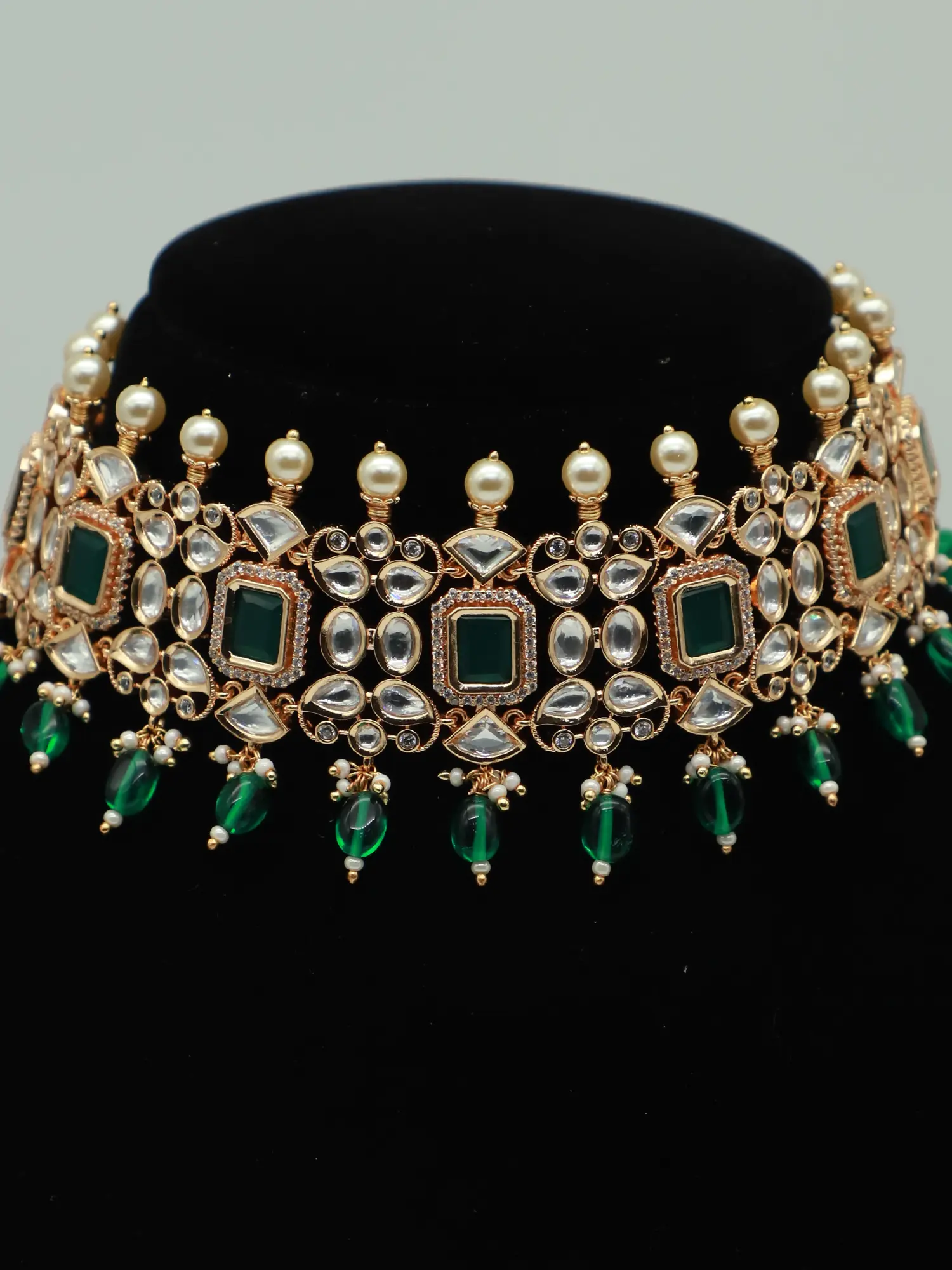 Majestic Multicolored Stone Studded Choker Set with Earrings