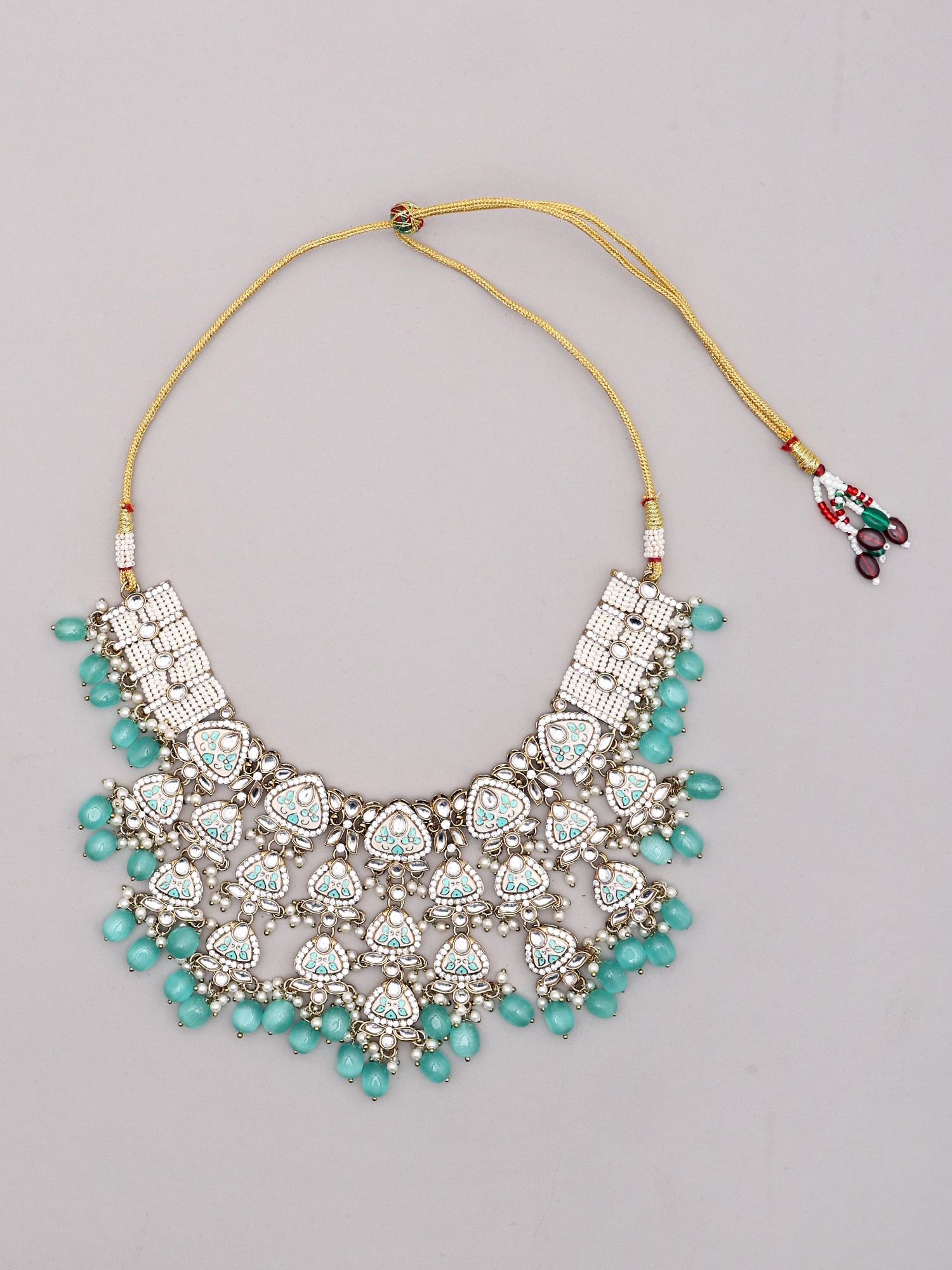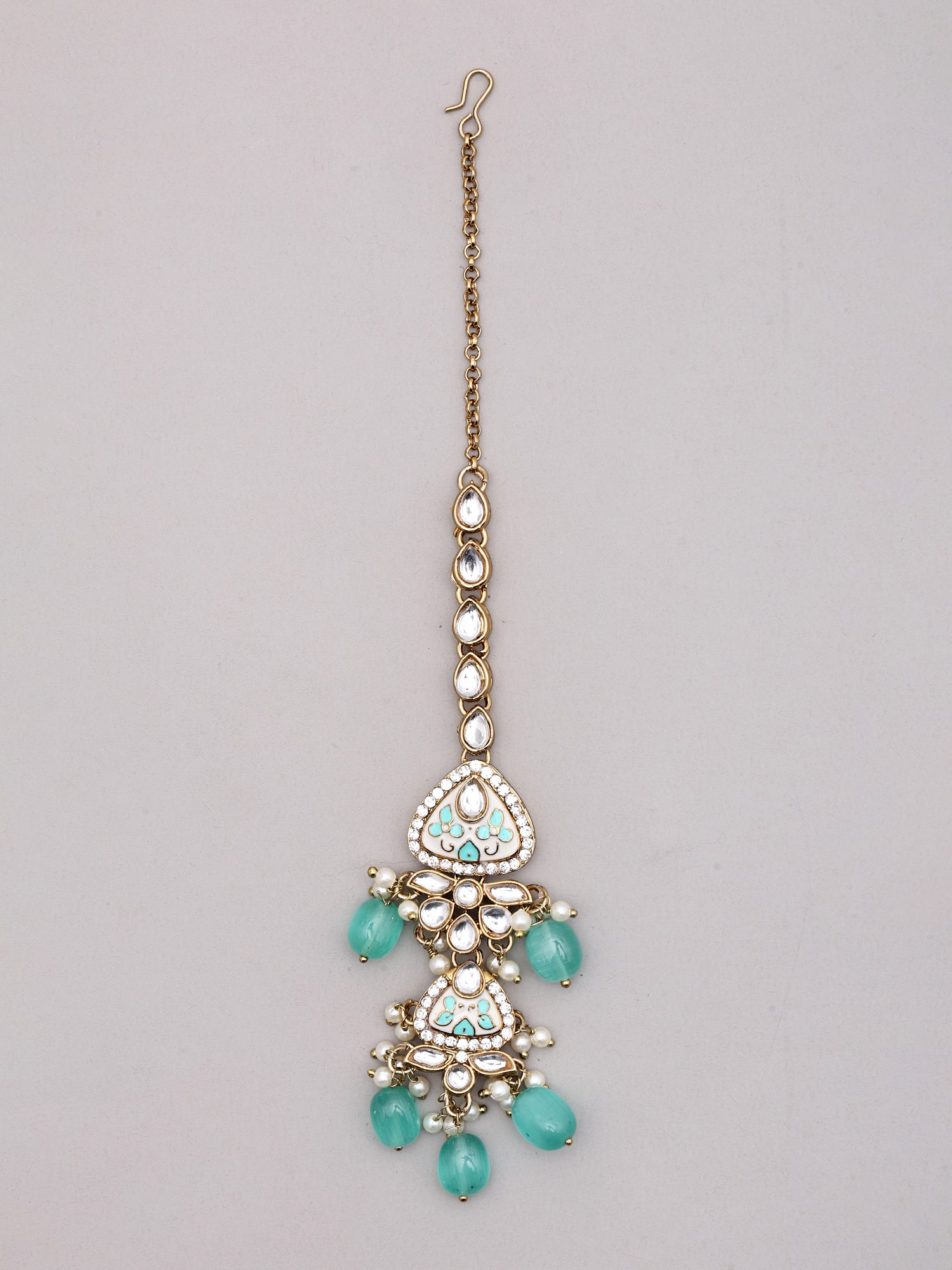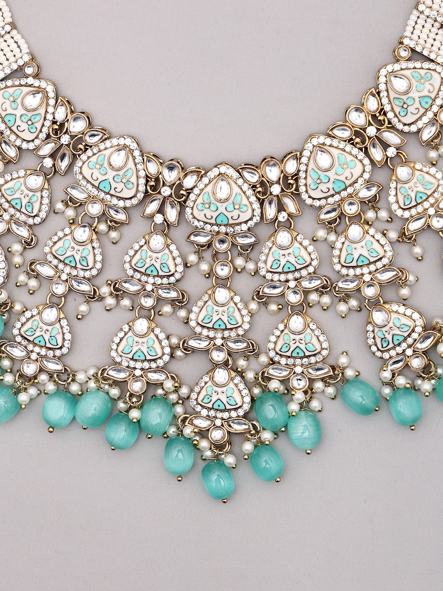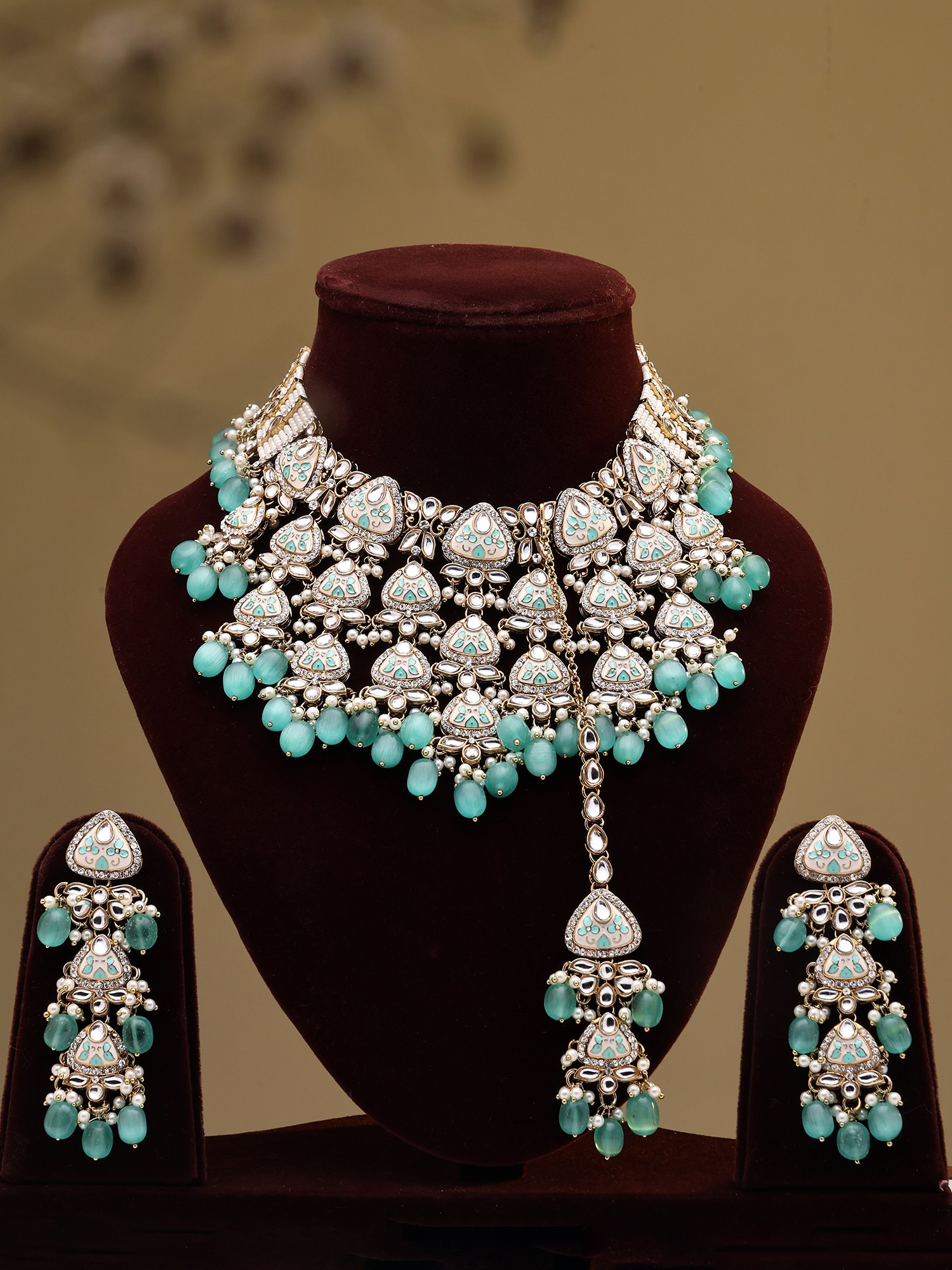 Mint Green Choker Necklace Set with Earrings and Mangtika