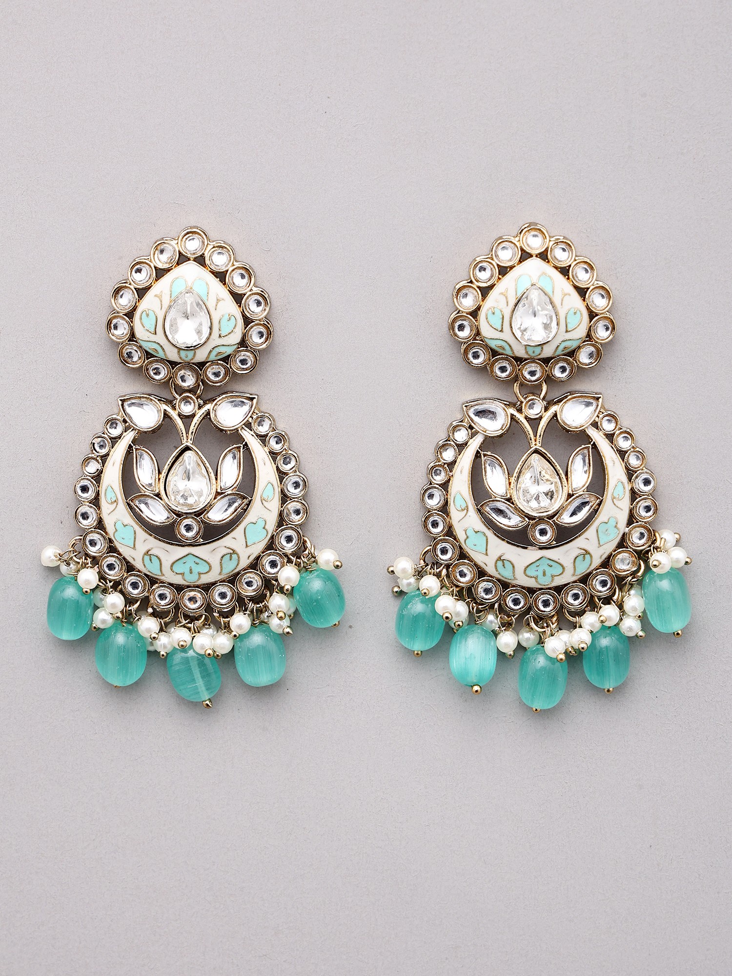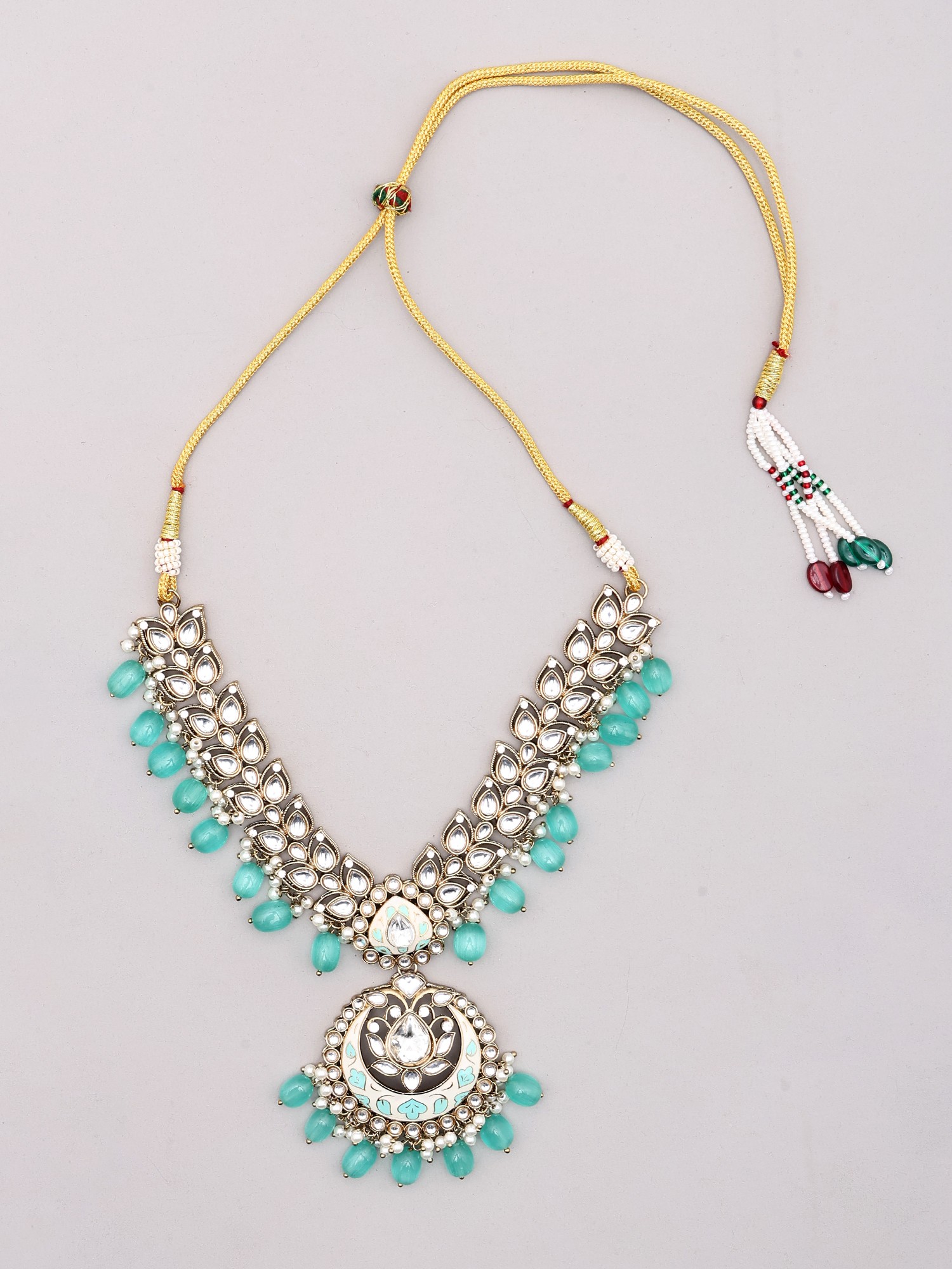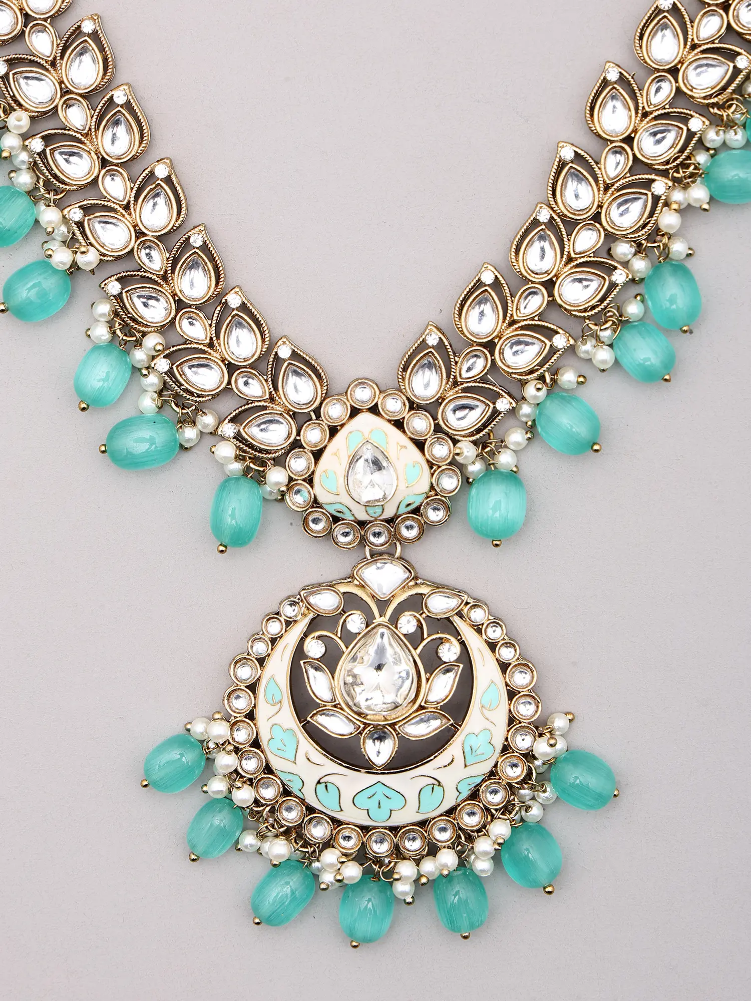 Victoria Polish Stone Studded Necklace Set With Earrings | Indian Fashion Jewelry