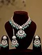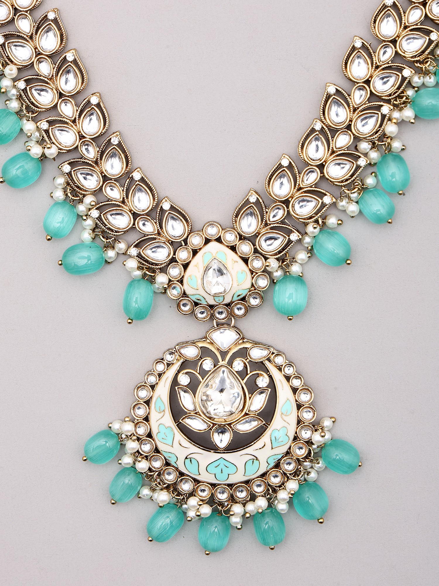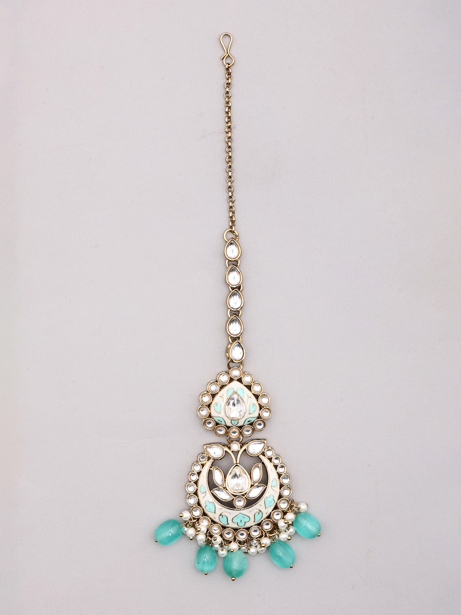 Mint Green Kundan Necklace Set with Earrings and Mangtika