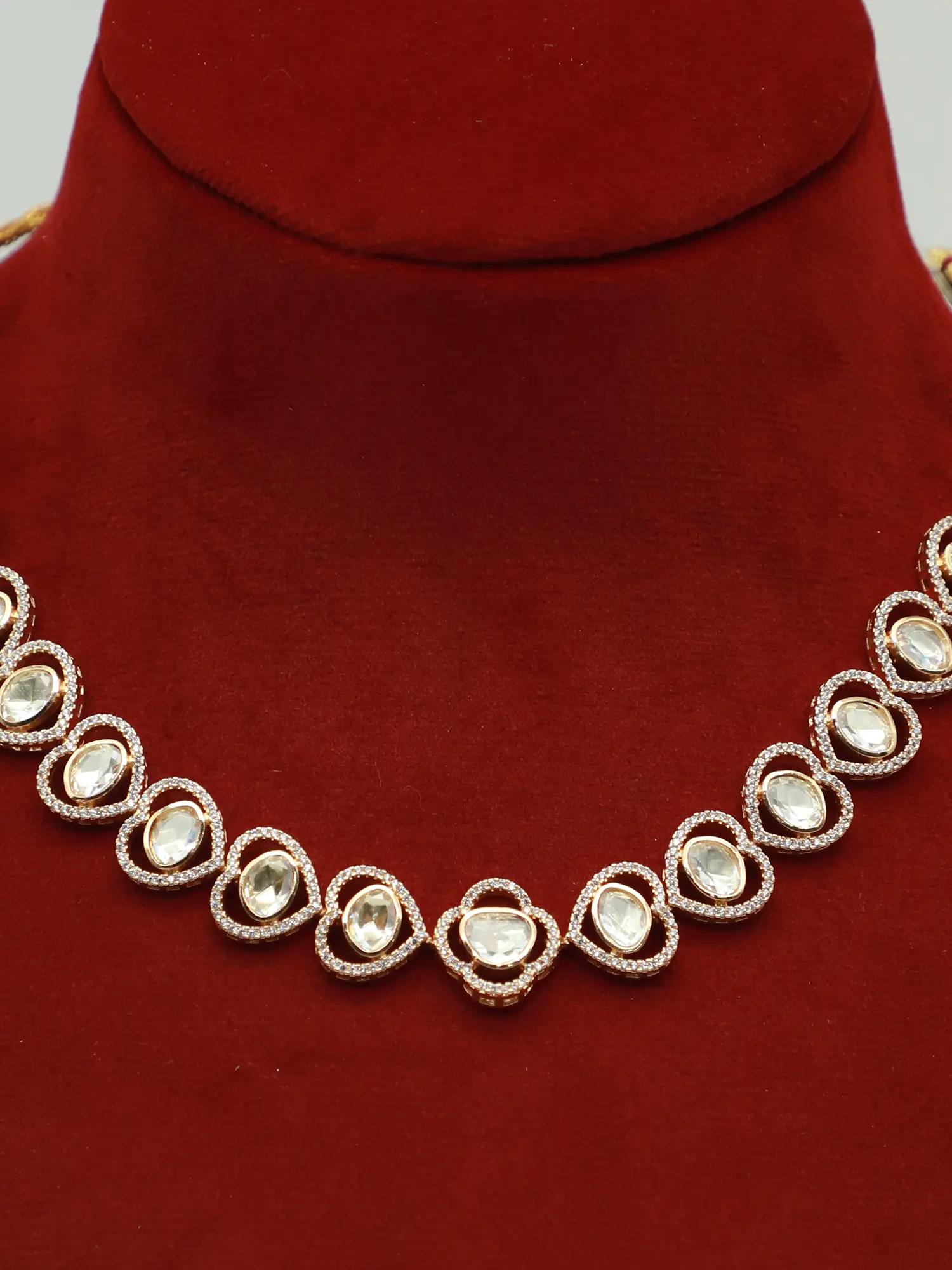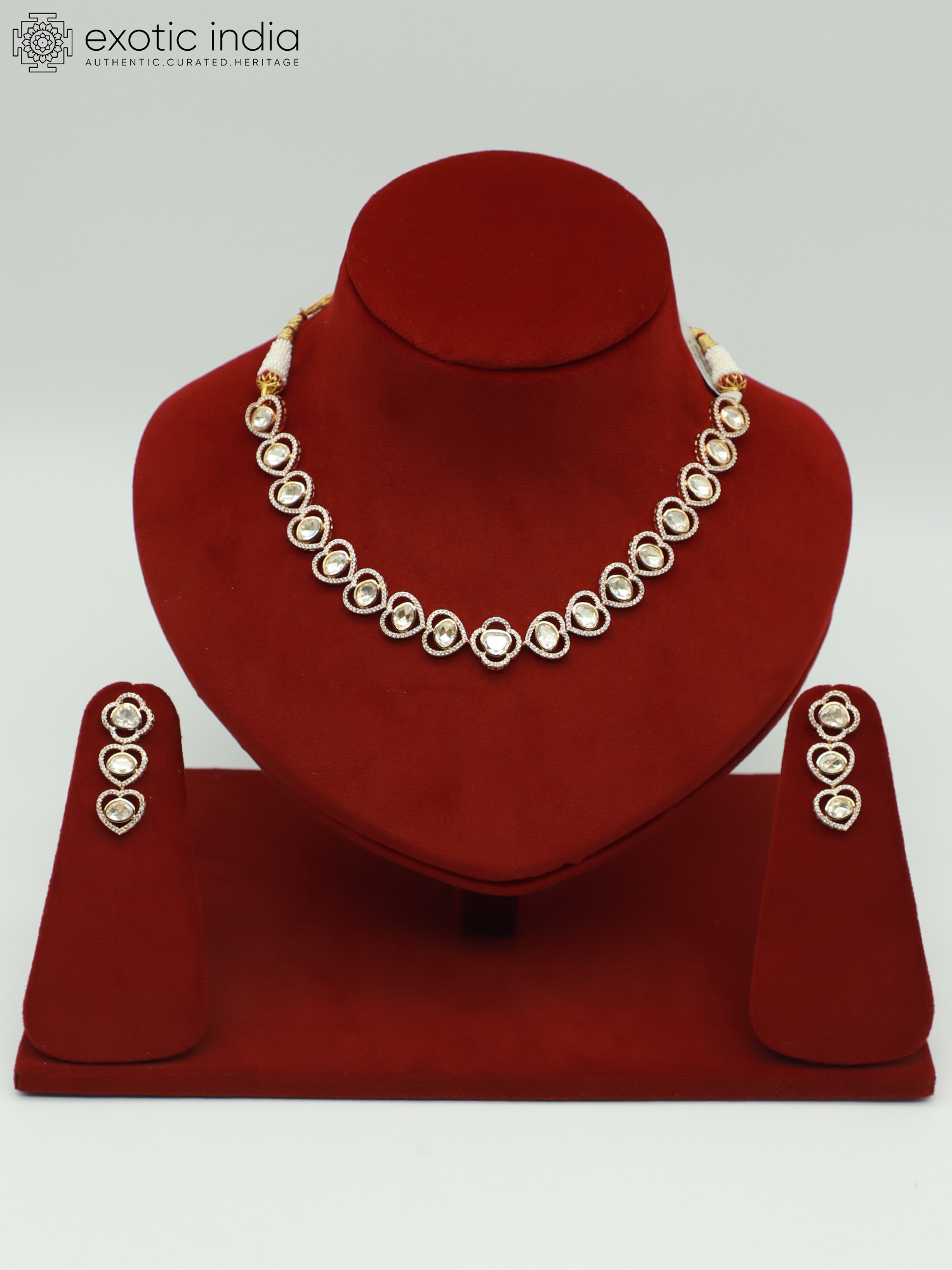 Beautiful Moissanite Necklace Set With Doublet Stone, Uncut Kundan And Antique Polished Earrings