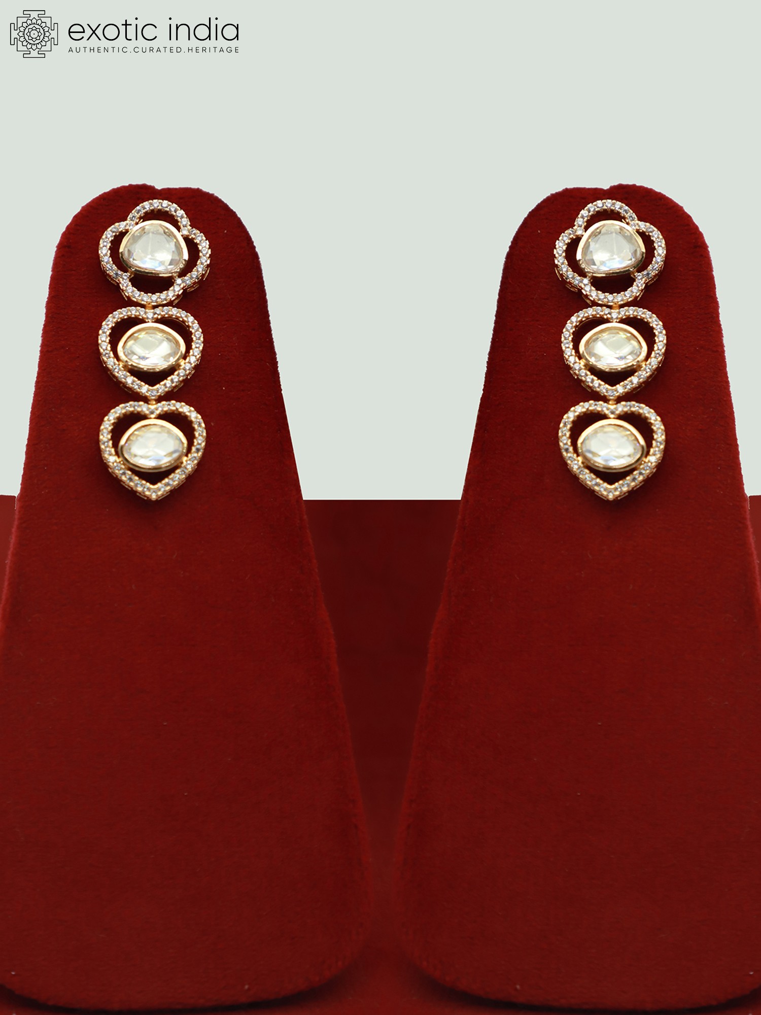 Moissanite Kundan Necklace Set With Beautiful Earrings And Hanging Beads