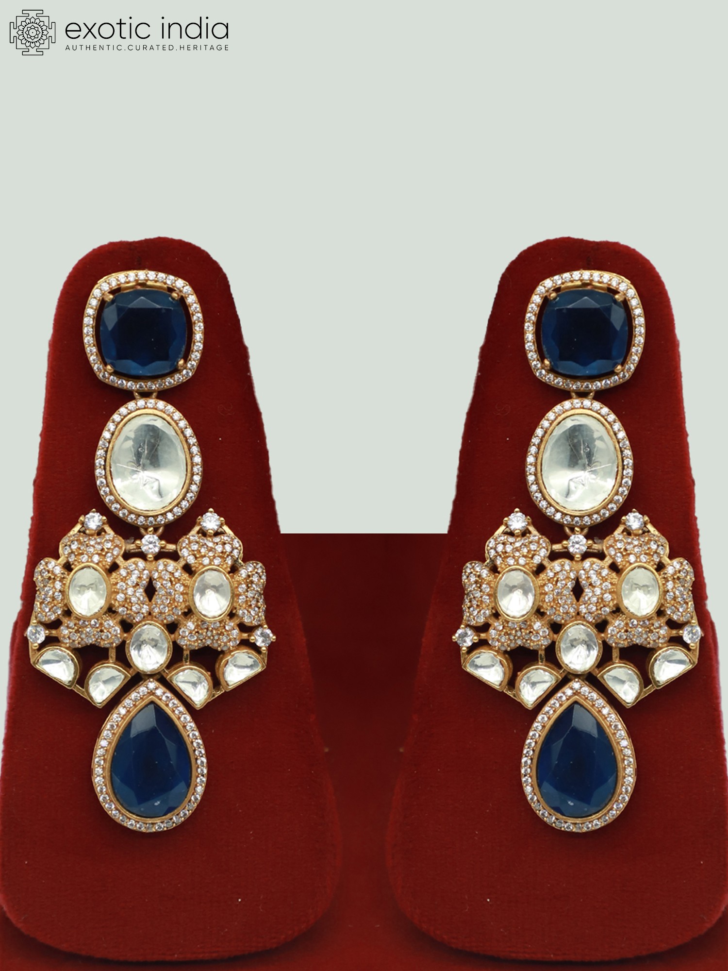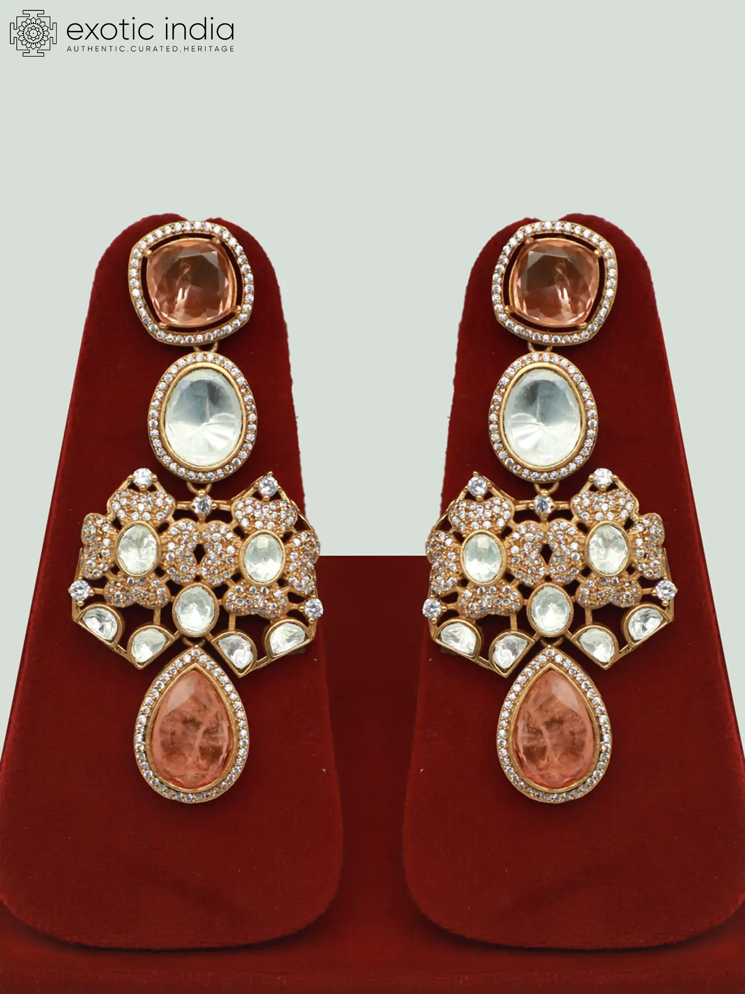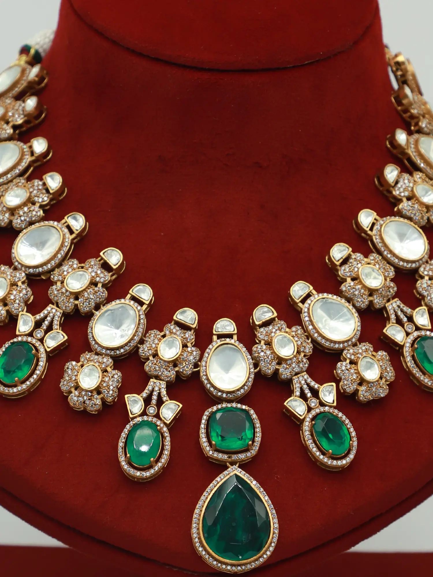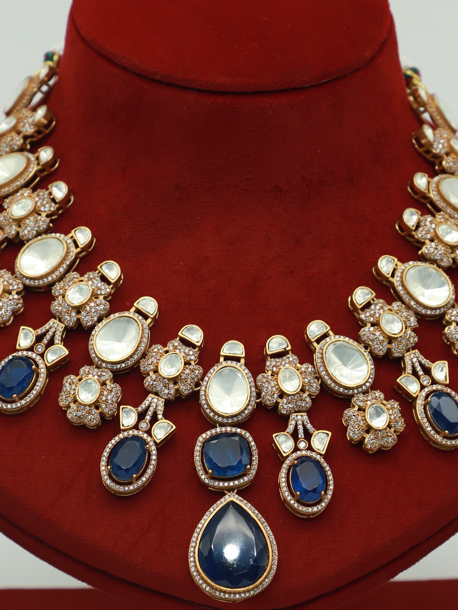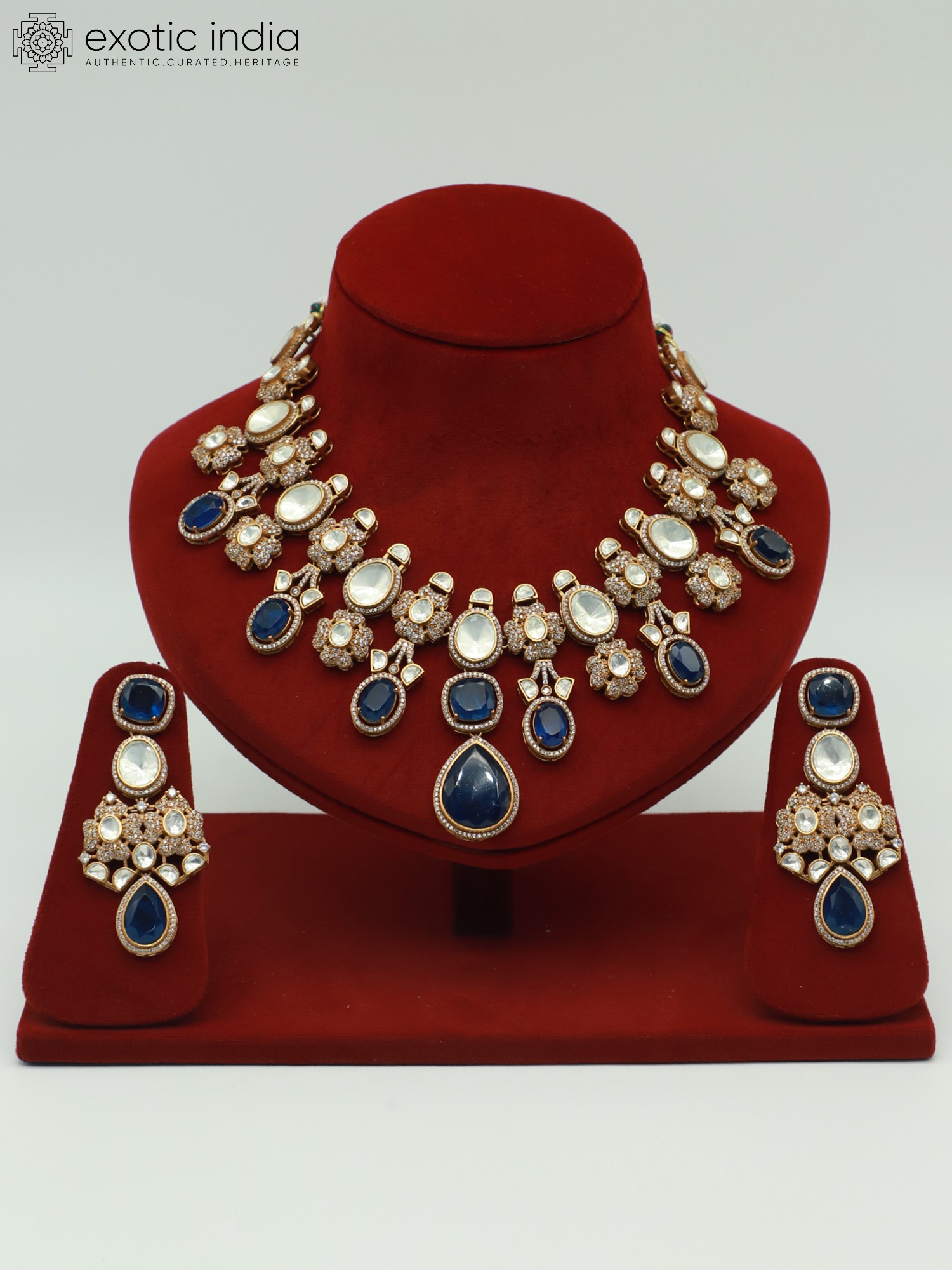 Beautiful Design Stone Studded Monalisa With Moissanite Kundan Necklace With Earrings