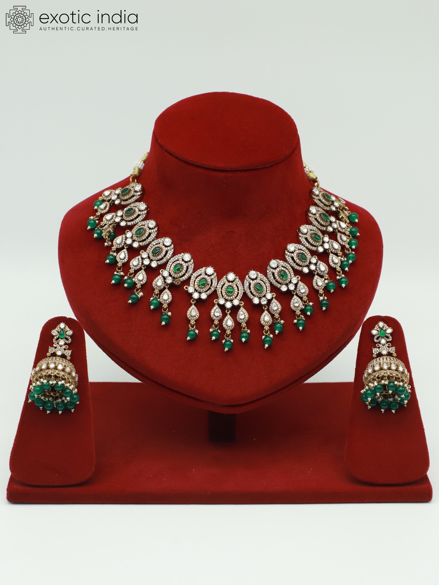 Beautiful Choker Necklace Set With Hanging Beads And Earrings In Brass