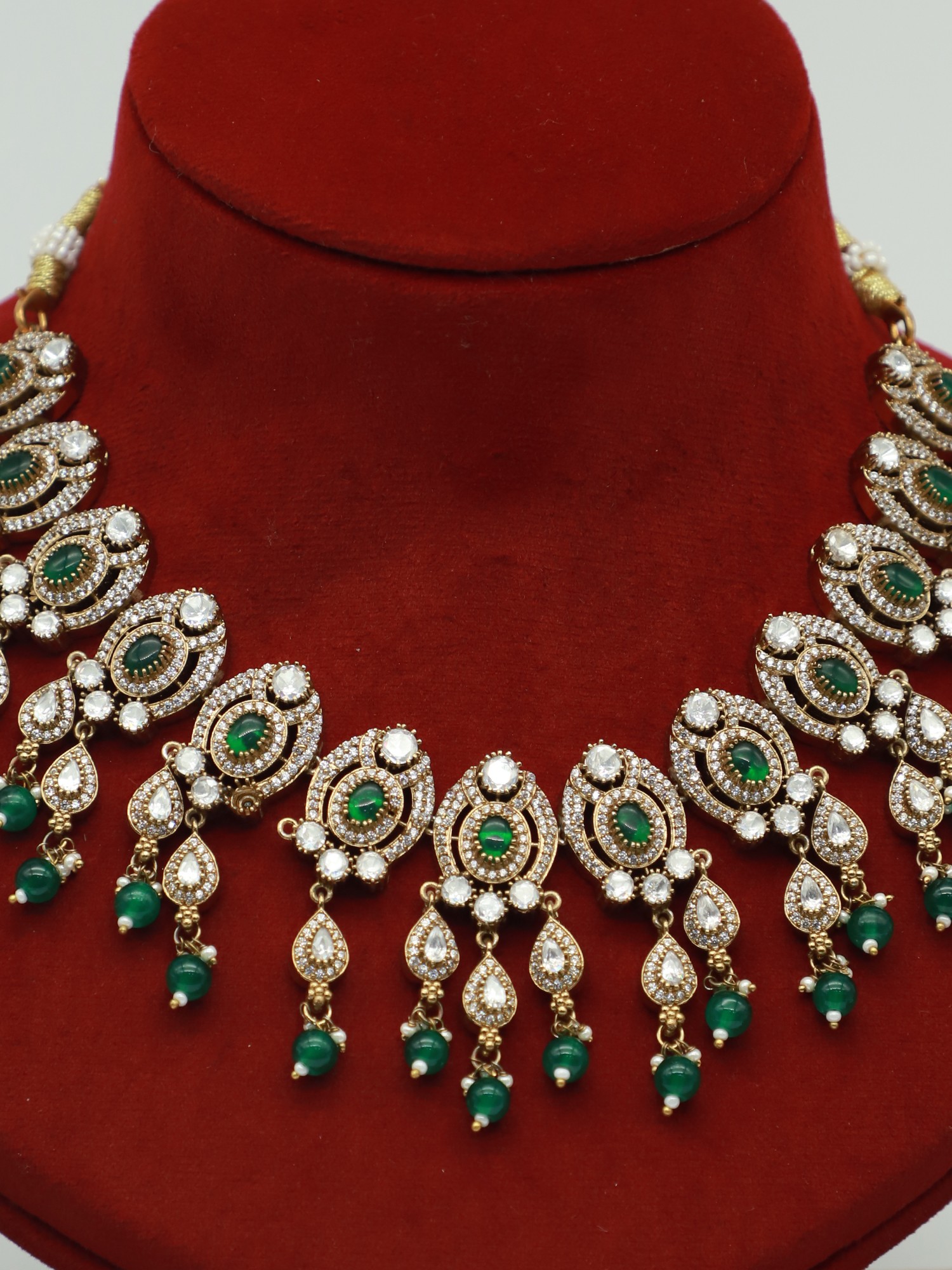 NECKLACE : 14.2 INCH LENGTH X 7.2 INCH WIDTH EARRINGS : 2.2 INCH HEIGHT X 1 INCH WIDTH