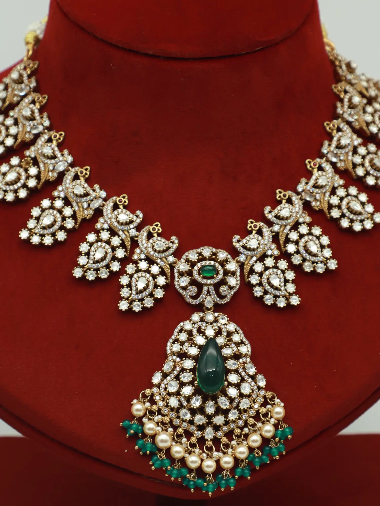 Designer Necklace & Earrings Set with Moissanite and Kundan