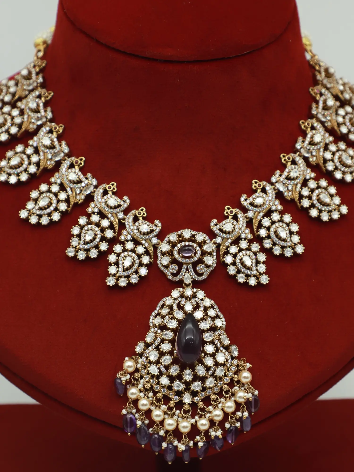 Designer Heavy Necklace Set With Moissanite Kundan And Earrings