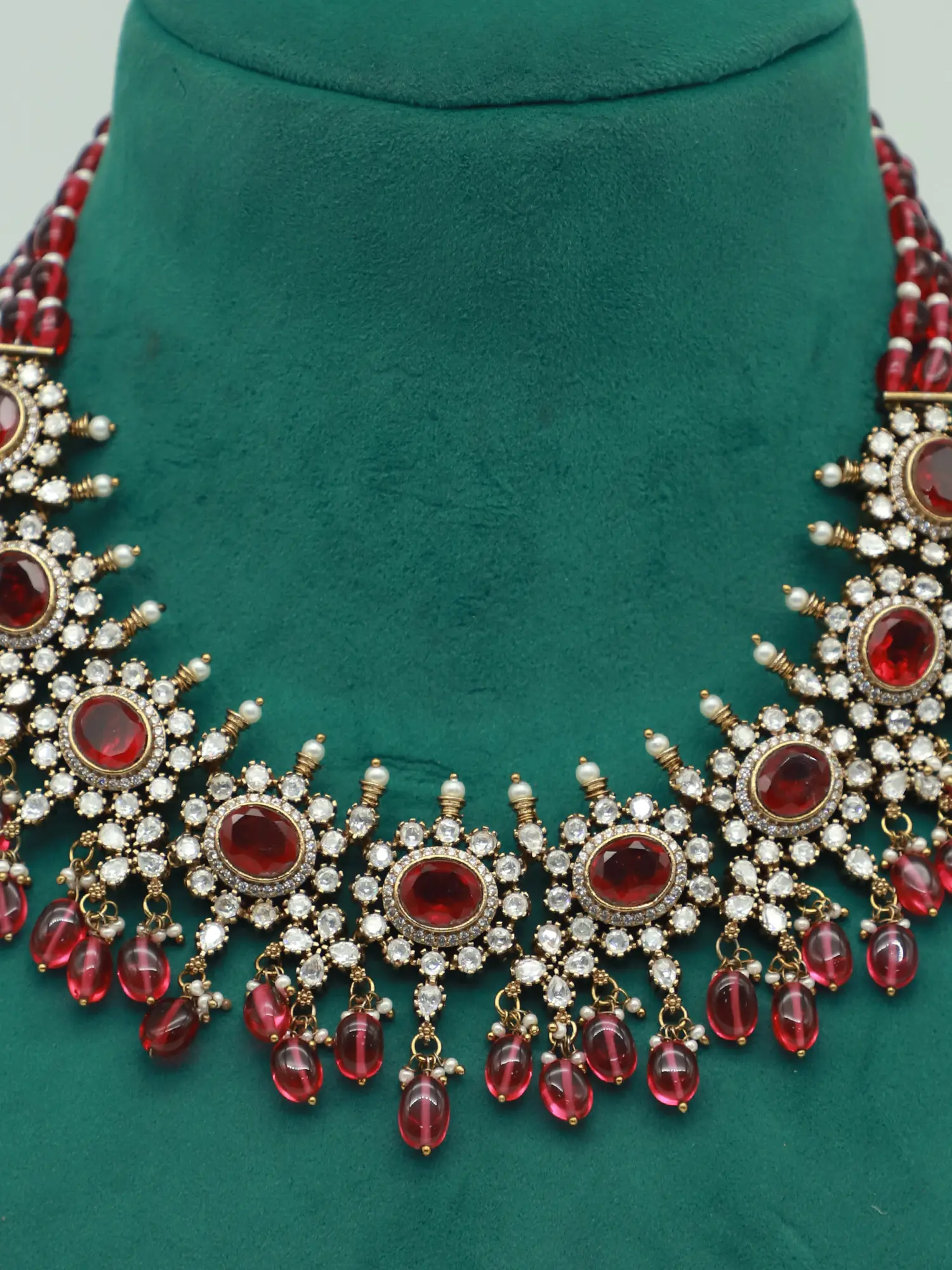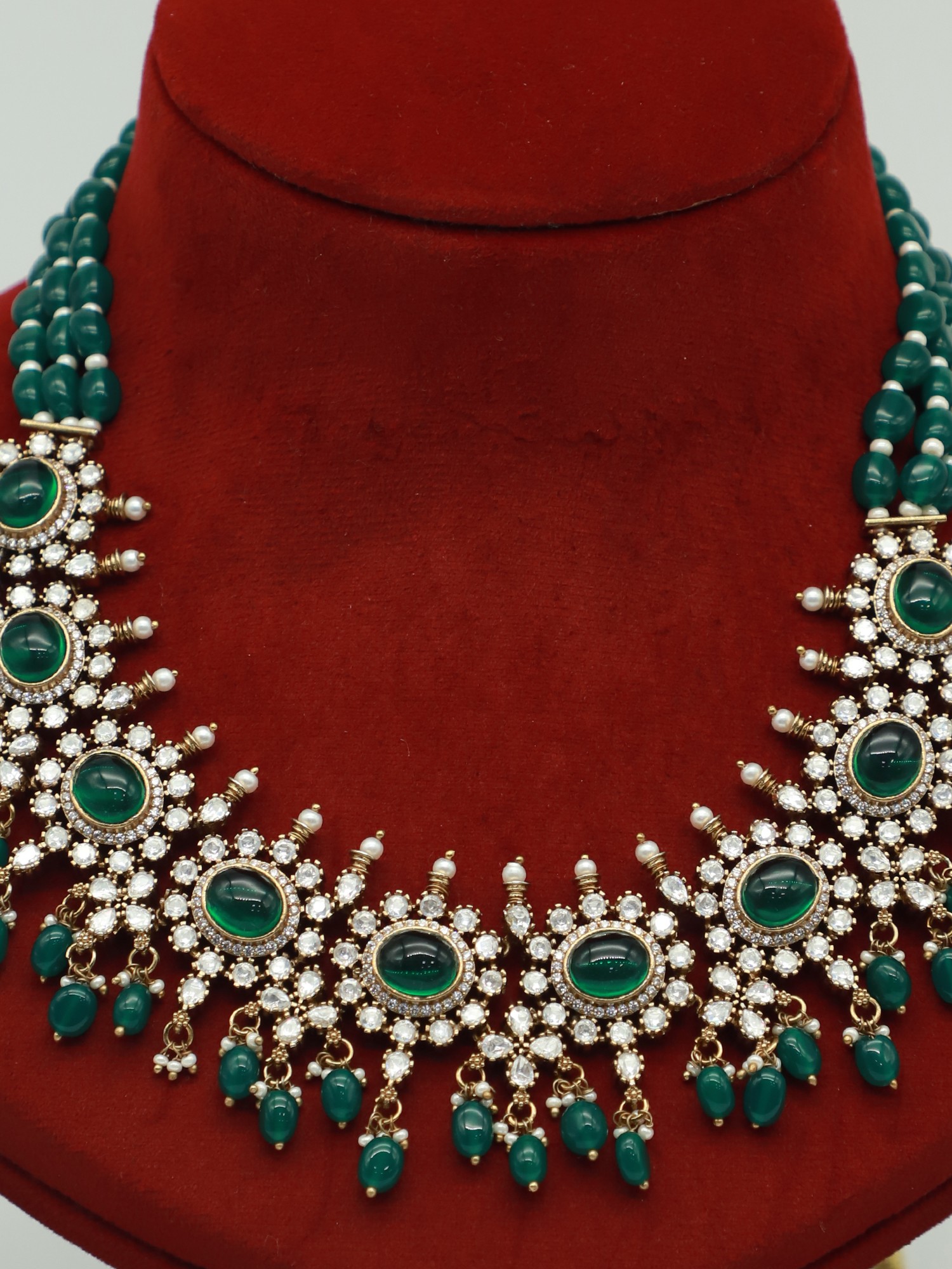 Royal Rajputi Style Broad Multi-Stone Necklace Set with Earrings