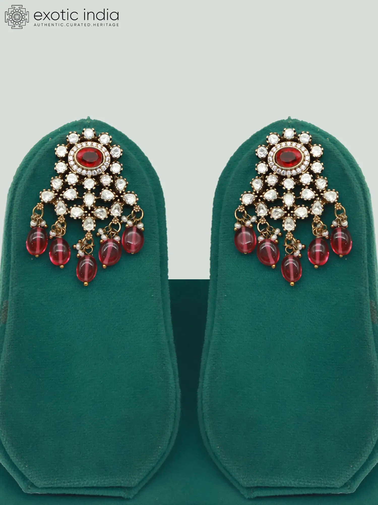 Stunning Floral Design Stone Studded Moissanite Kundan With Monalisa Beads Necklace With Earrings