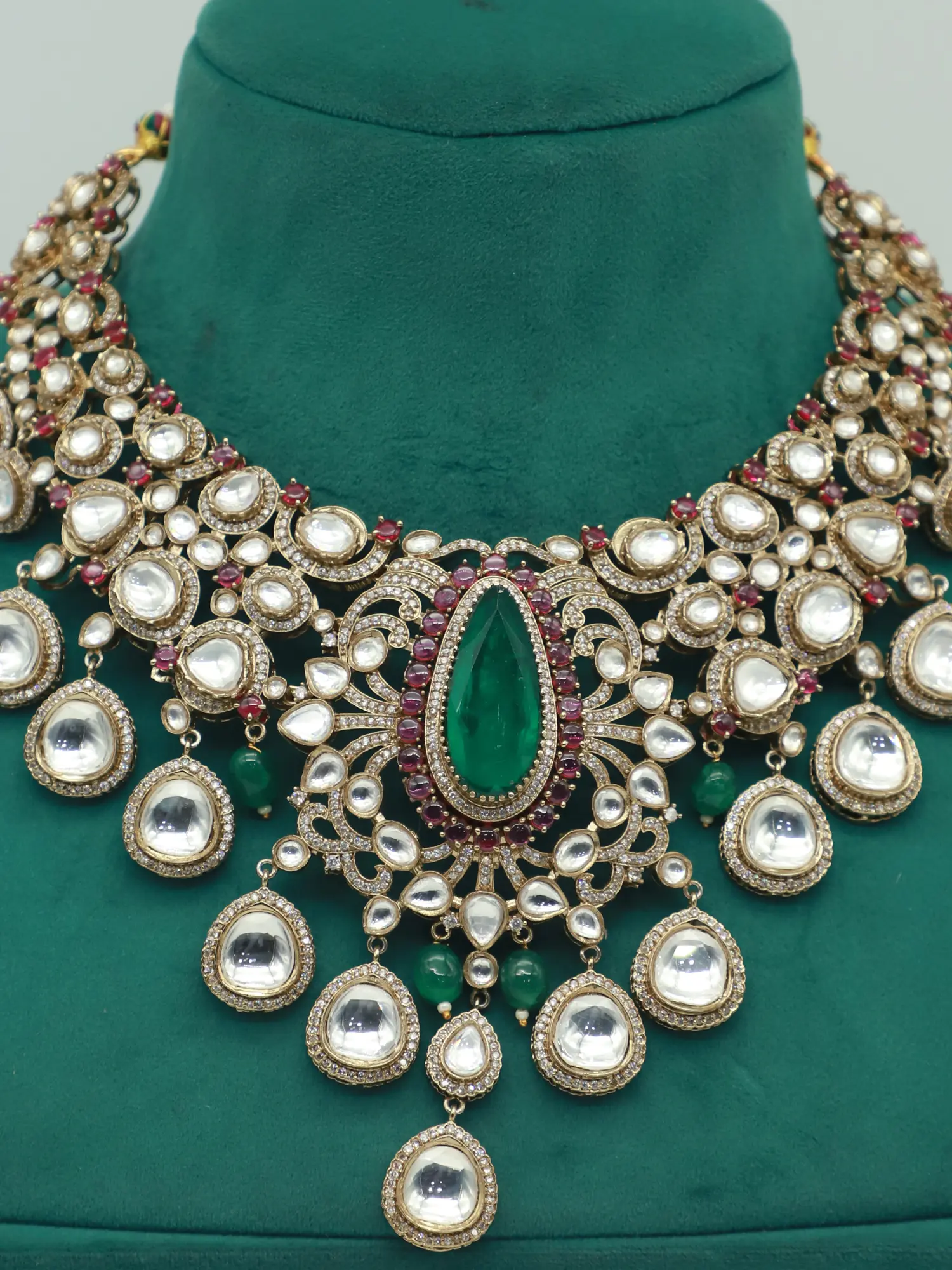 Designer Heavy Necklace Set With Moissanite Kundan And Earrings