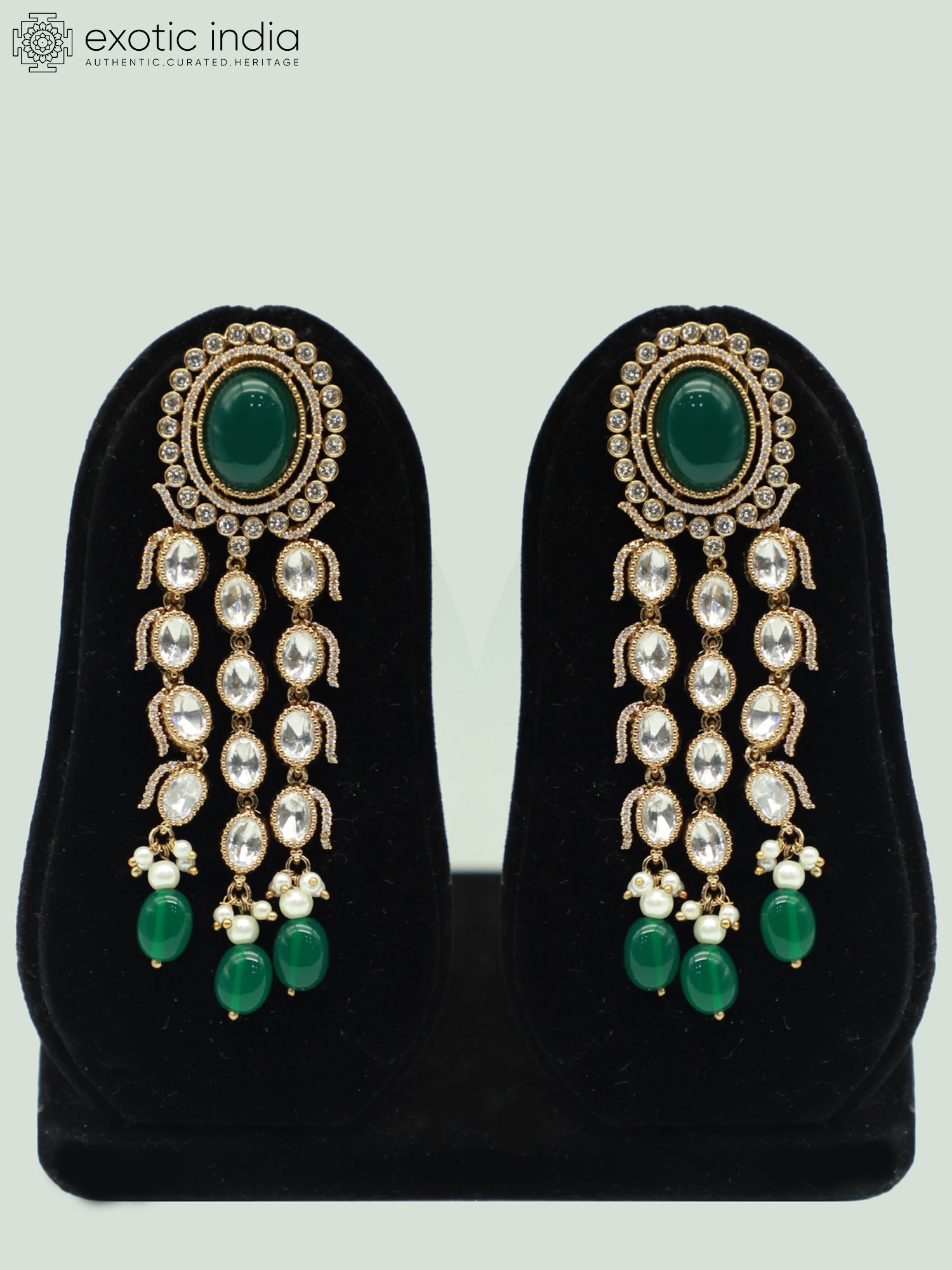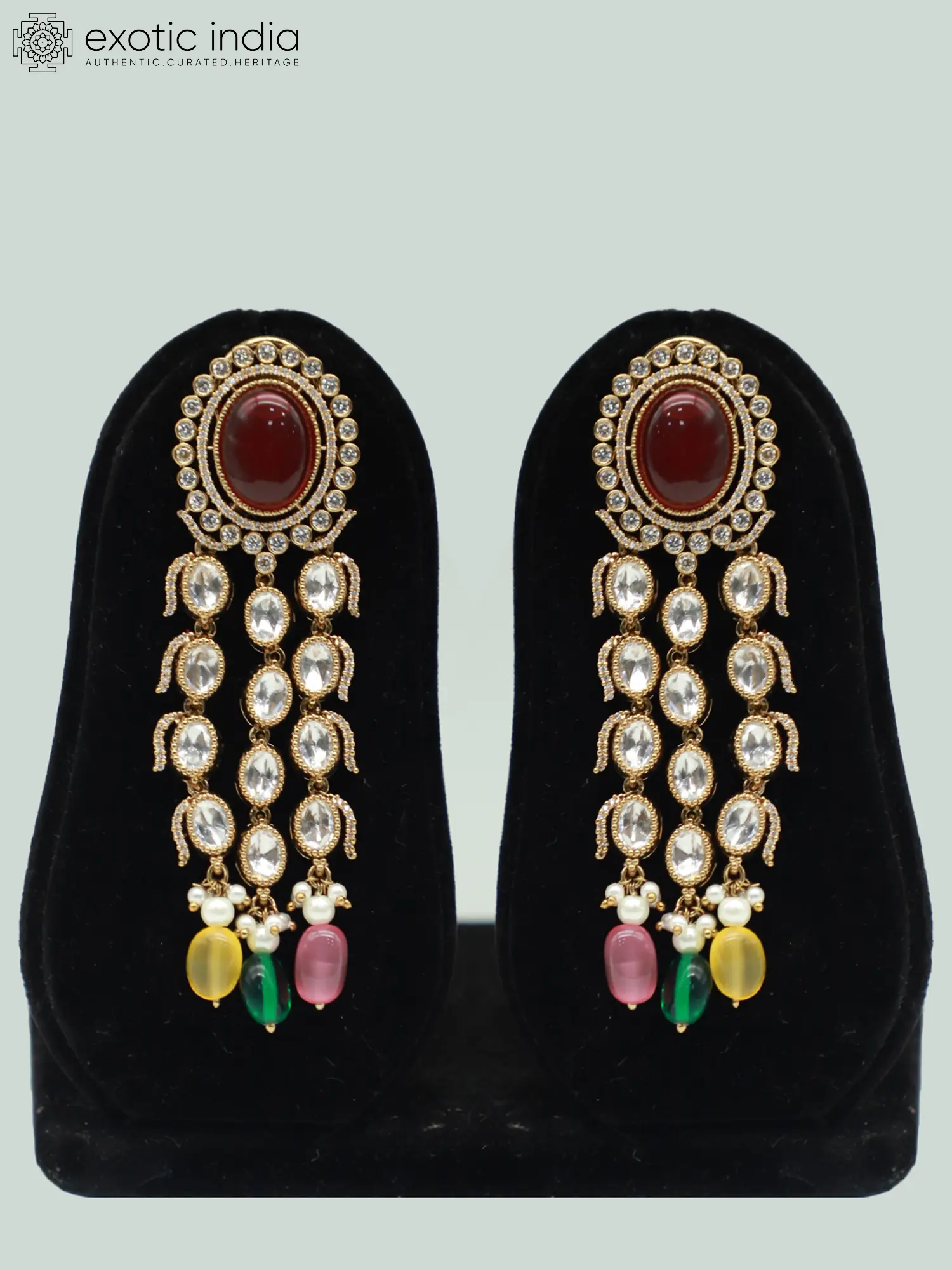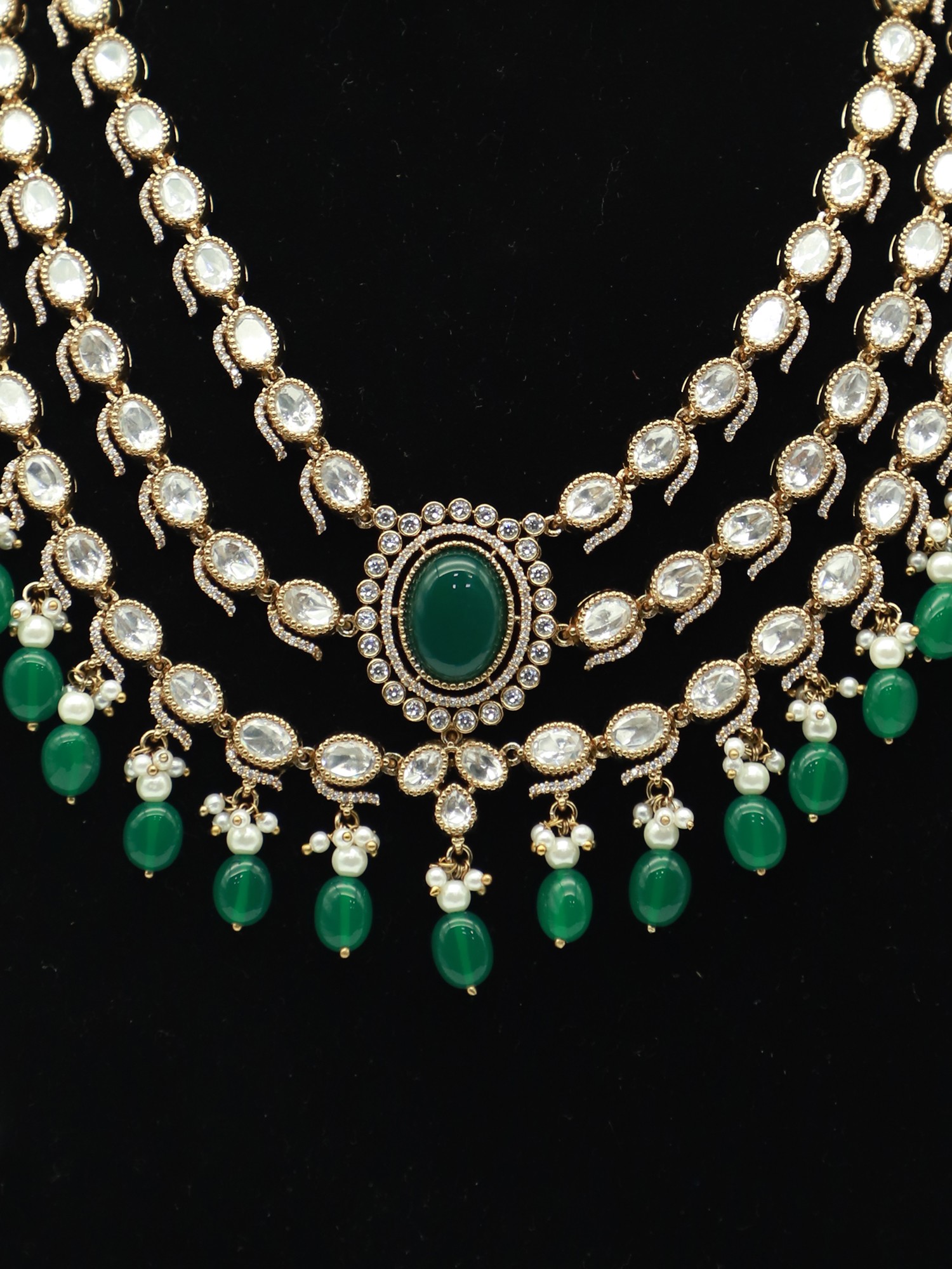 Beautiful Design Stone Studded Monalisa With Moissanite Kundan Necklace With Earrings