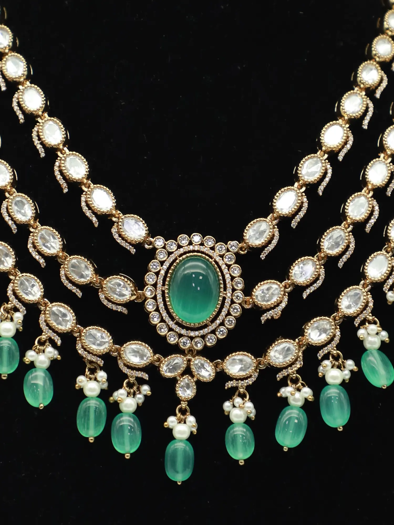 Monalisa With Moissanite Kundan Stone Studded Necklace Set With Earrings