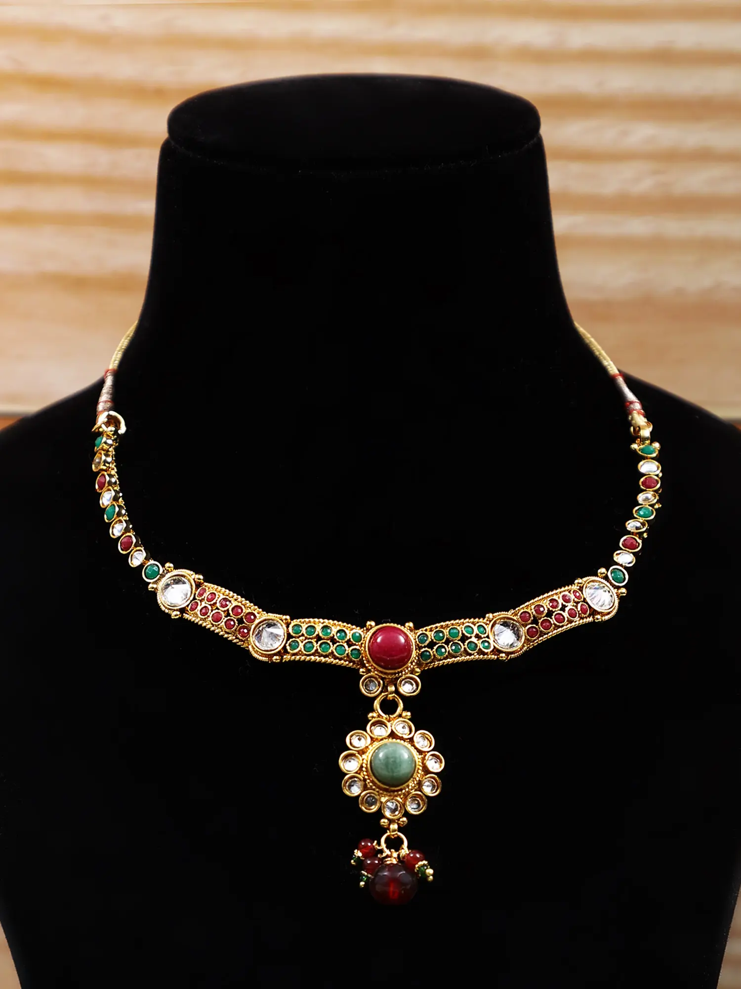 Elevate your style with our multi-stone fashion necklace. This exquisite piece combines an array of colorful stones, creating a vibration and elegant accessory. Each stone is carefully selected, contributing to the overall allure of this statement piece. Embrace the beauty of diverse colors and shapes, making a bold and stylish statement with our multi-stone fashion necklace.
