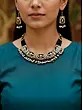 The overall height of the necklace is 5 inches. The piece is carefully constructed using high-quality metal components, ensuring durability and long-lasting beauty. To maintain its luster and shine, it's recommended to store the jewelry in a dry, airtight container and avoid contact with harsh chemicals or excessive moisture. With proper care, this exquisite necklace set will remain a cherished part of your jewelry collection for years to come. The subtle shimmer of the stones and the rich tones of the metal work together to create a piece that is both elegant and eye-catching, a true testament to the enduring appeal of Indian fashion jewelry.