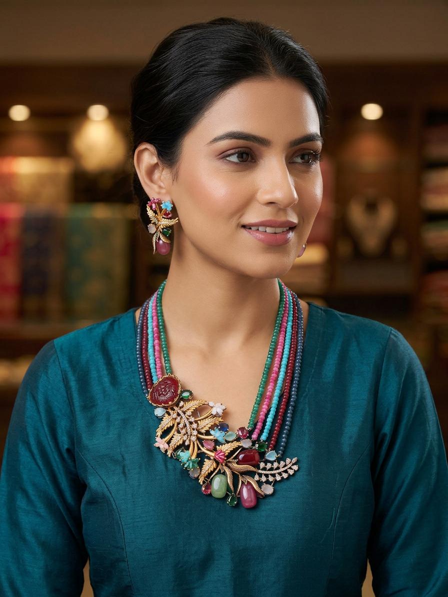 Multicolor Floral Design Necklace Set With Earrings | Indian Fashion Jewelry