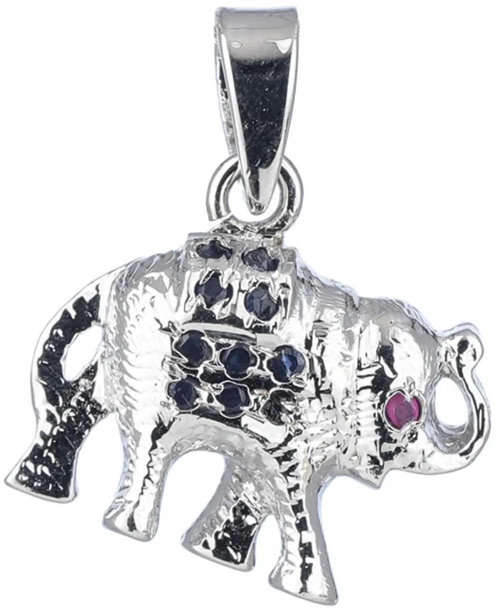 Put this Sterling Silver Pendant in the shape of an elephant, multi-toned, to accentuate your neckline. Several gemstones are set into the elaborate elephant-inspired design, which results in an eye-catching and stylish accessory. This pendant's expert craftsmanship skillfully combines ageless charm with cultural significance.