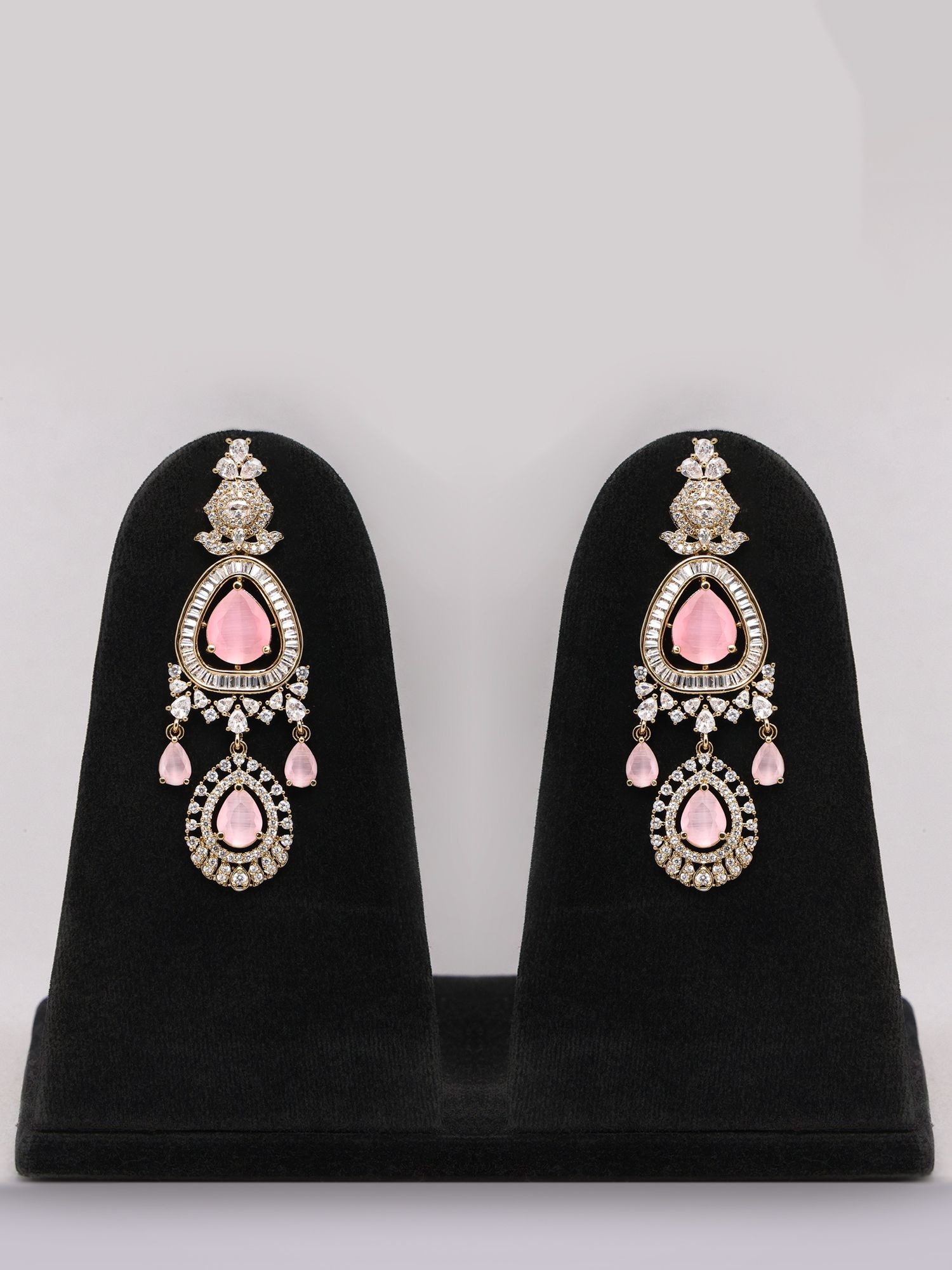 Elegant Necklace and Earring Set with Pink American Diamonds