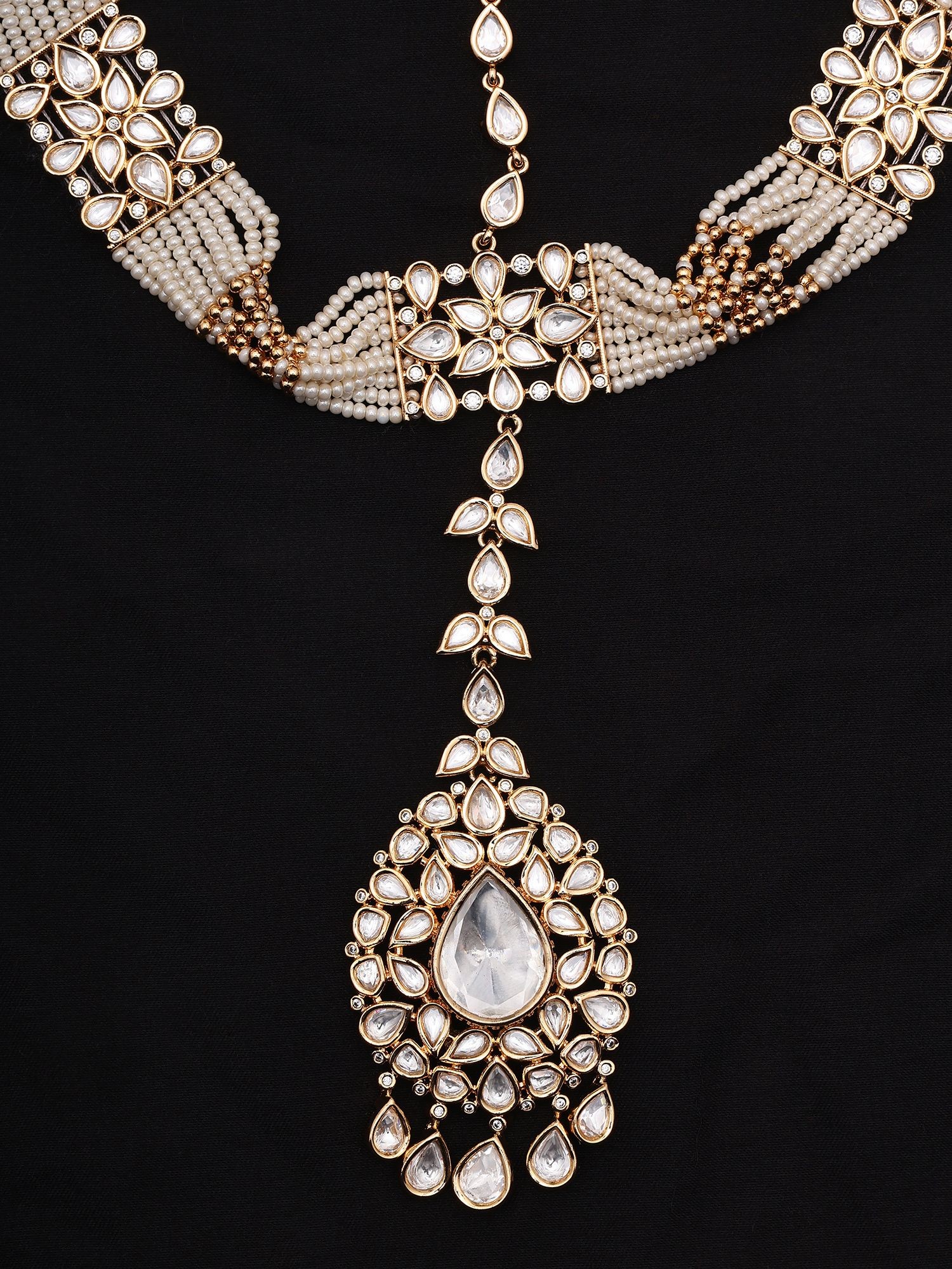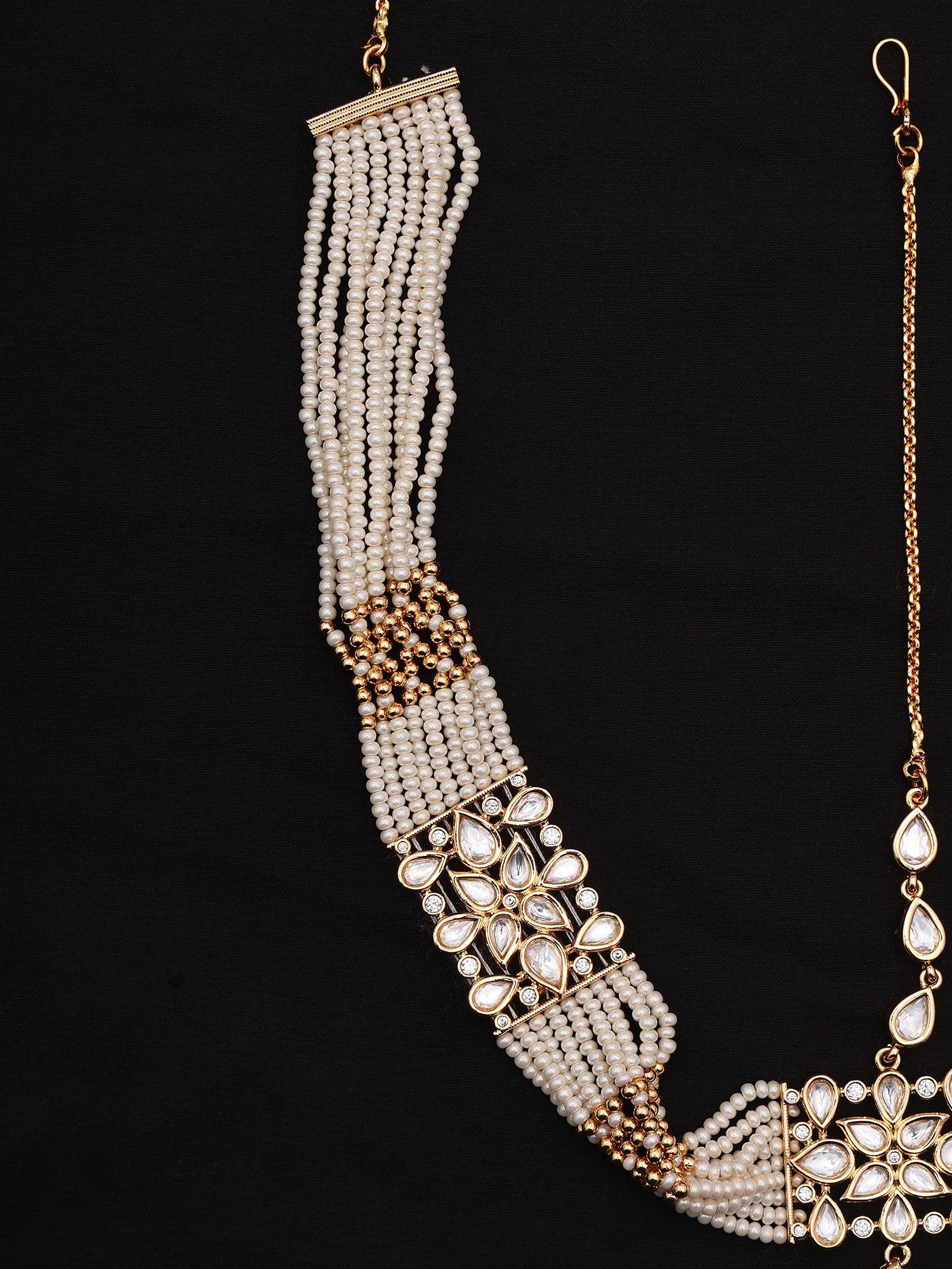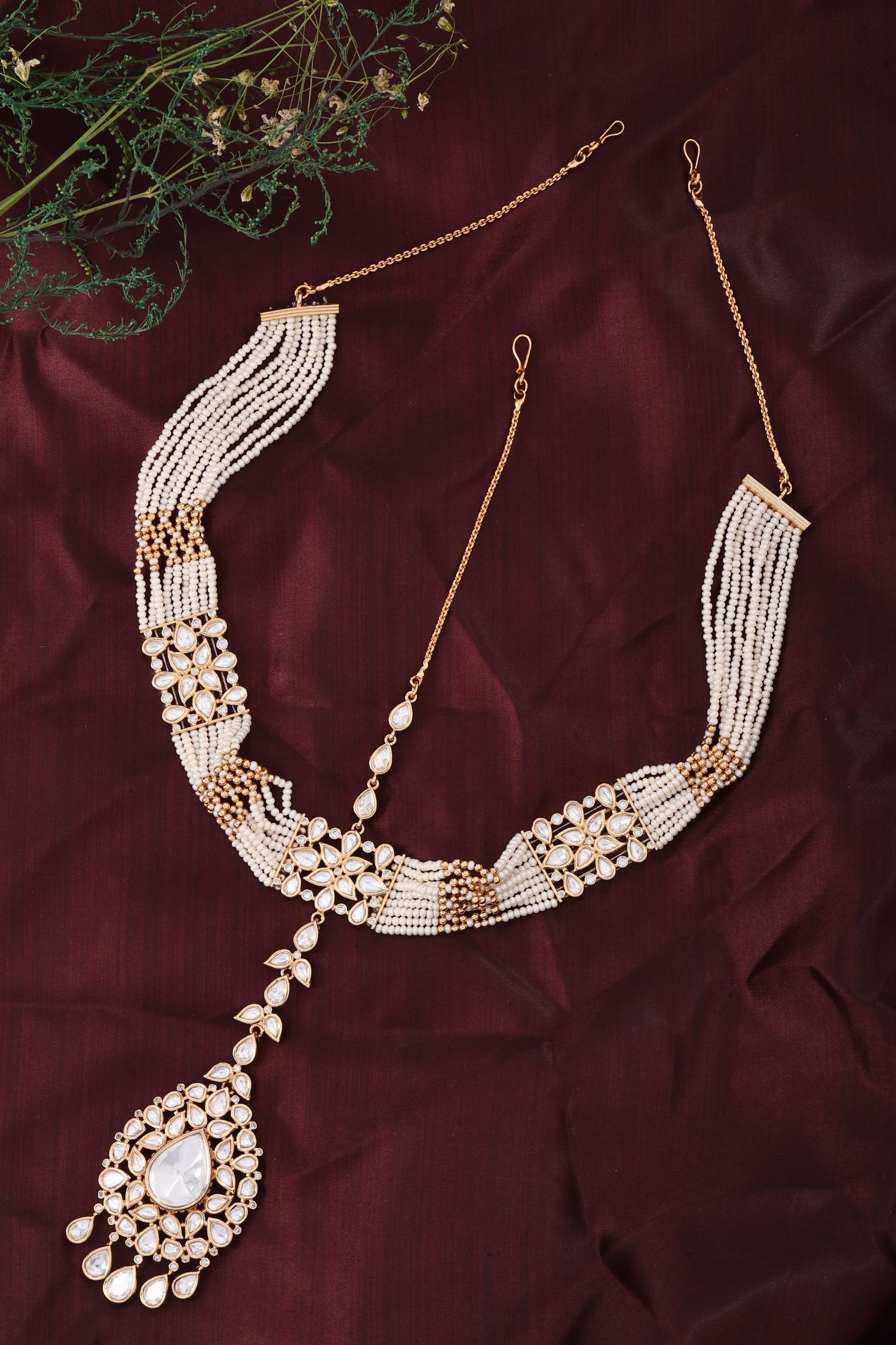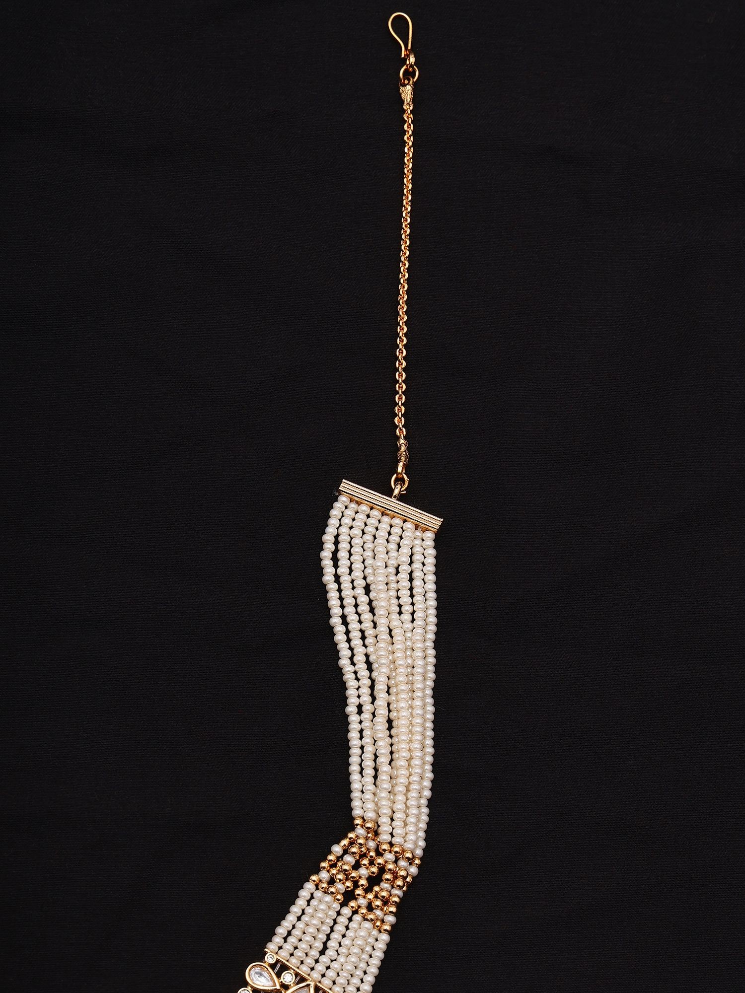 Multi-Strand Pearl Kundan Bridal Matha Patti with Teardrop Maang Tikka