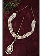Includes a statement teardrop maang tikka with shimmering Kundan embellishments.