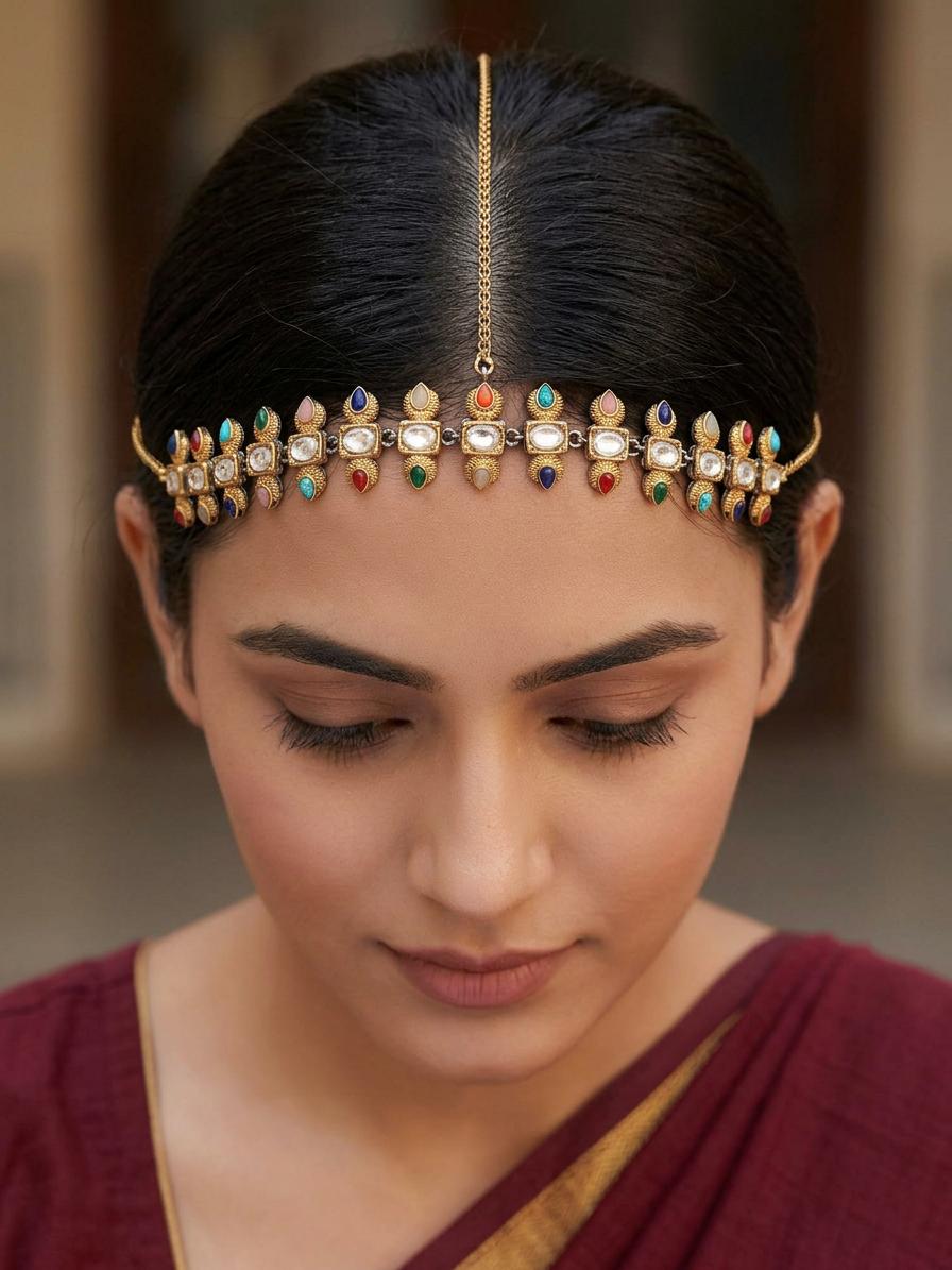 Adorn Yourself with Elegance: The Multicolor Stone-Studded Matha Patti