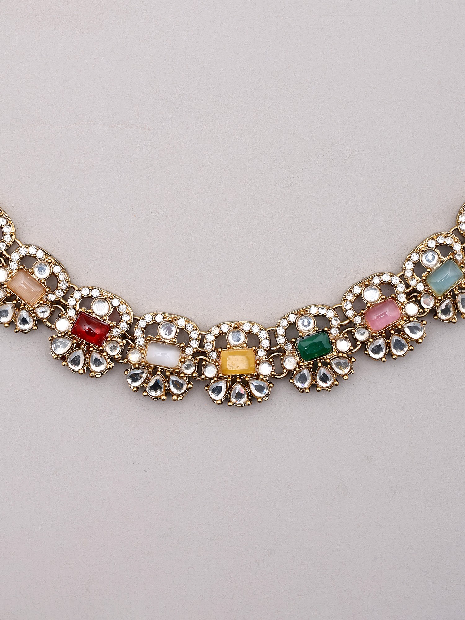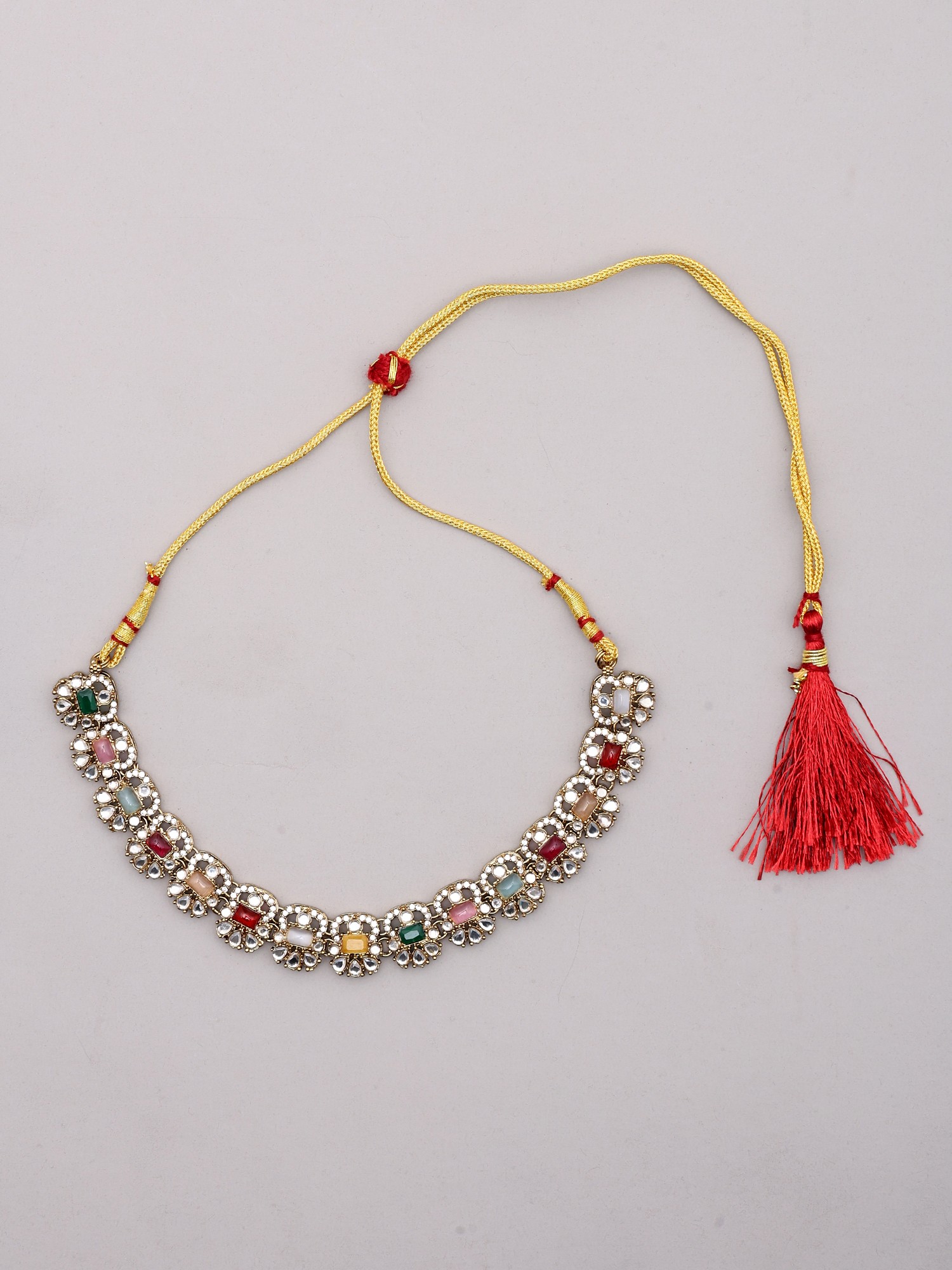 Multicolor Stone Studded Choker Necklace Set With Earrings | Indian Fashion Jewelry