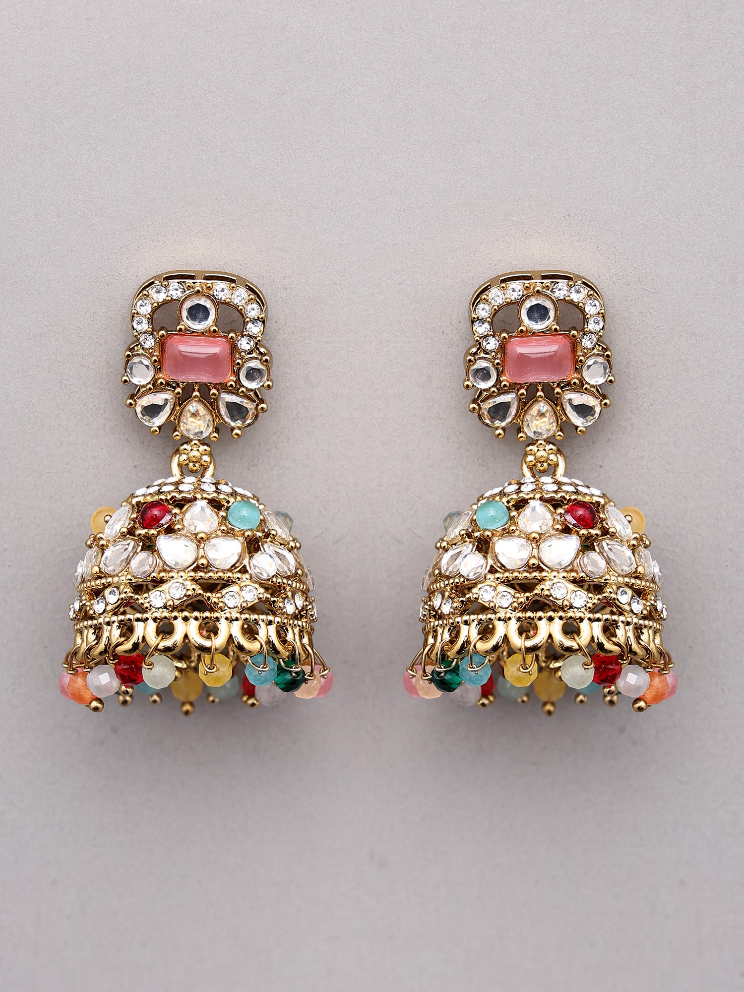 Multicolor Stone Studded Necklace Set with Jhumka Earrings and Mangtika
