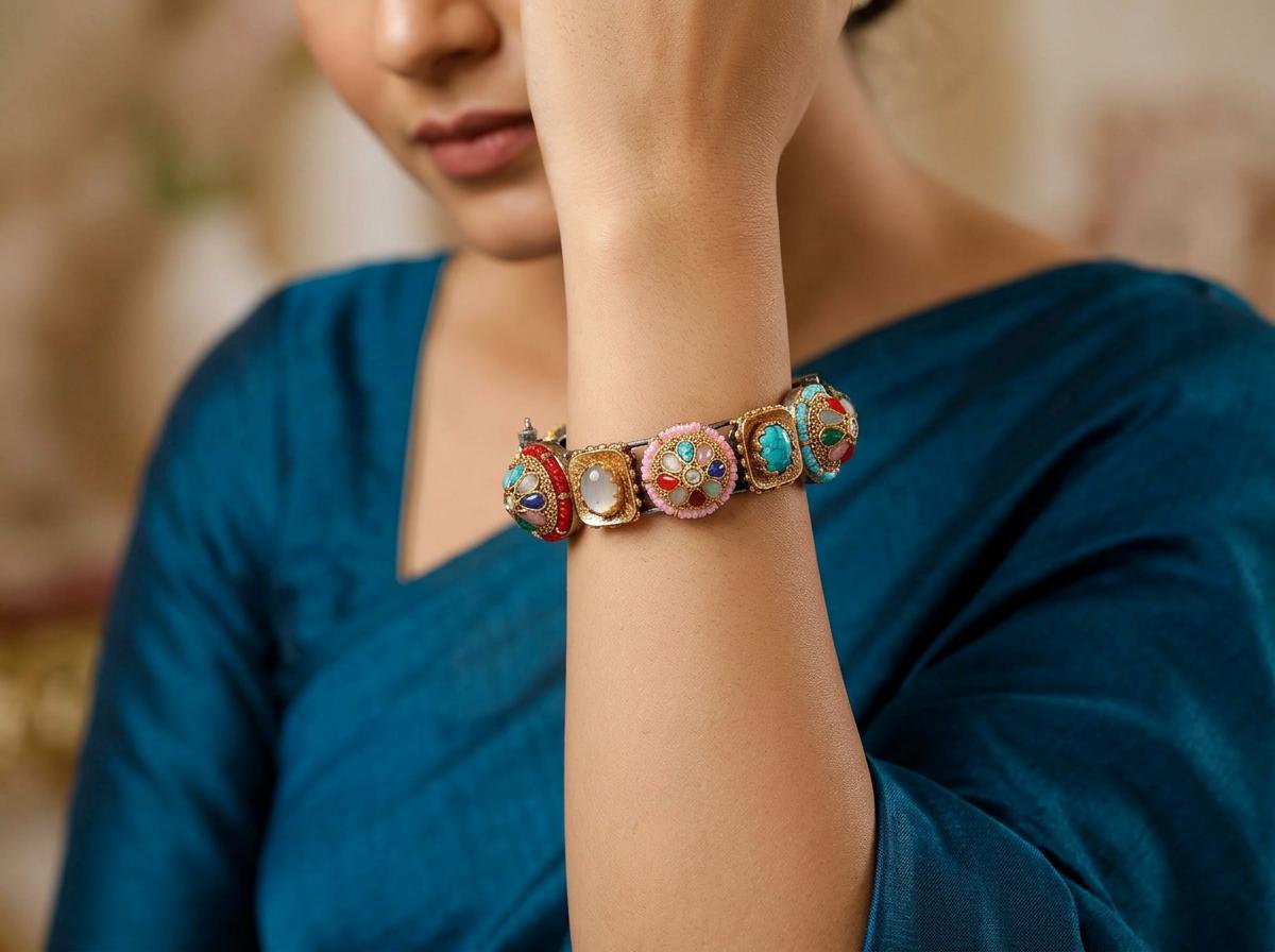 Multicolor Stone Studded Openable Bangle