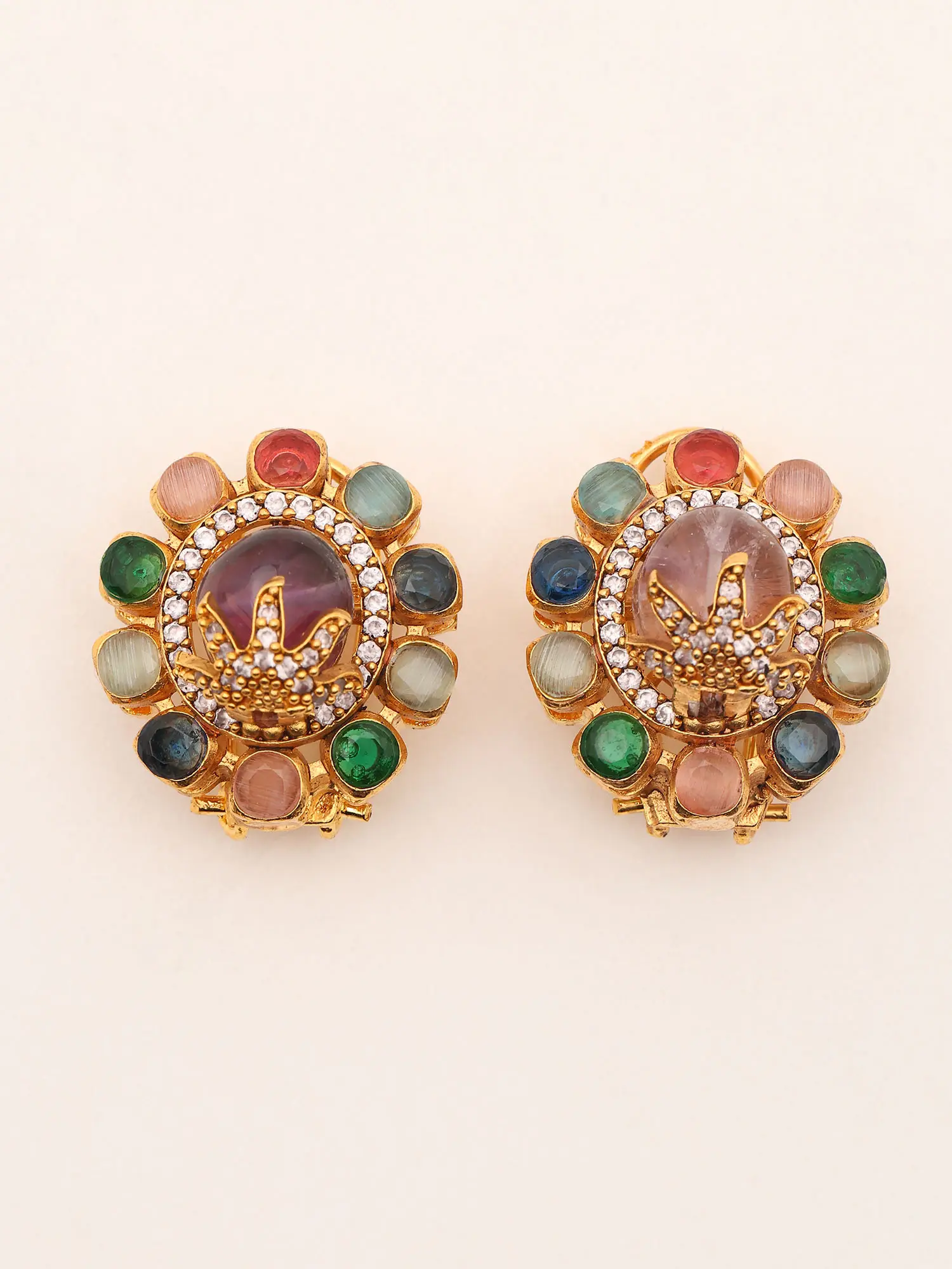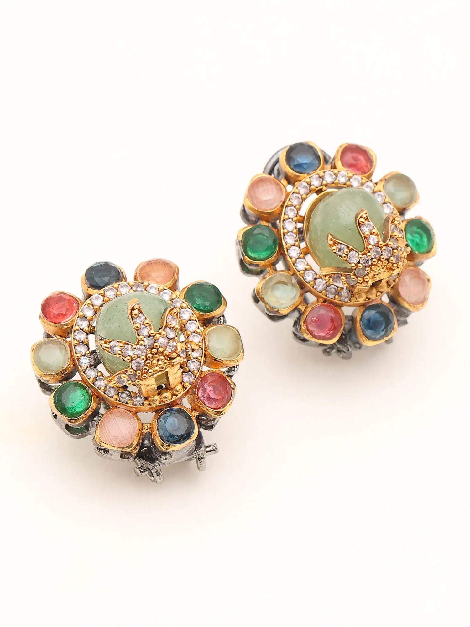 Multicolor Stone Studded Designer Necklace and Earrings Set