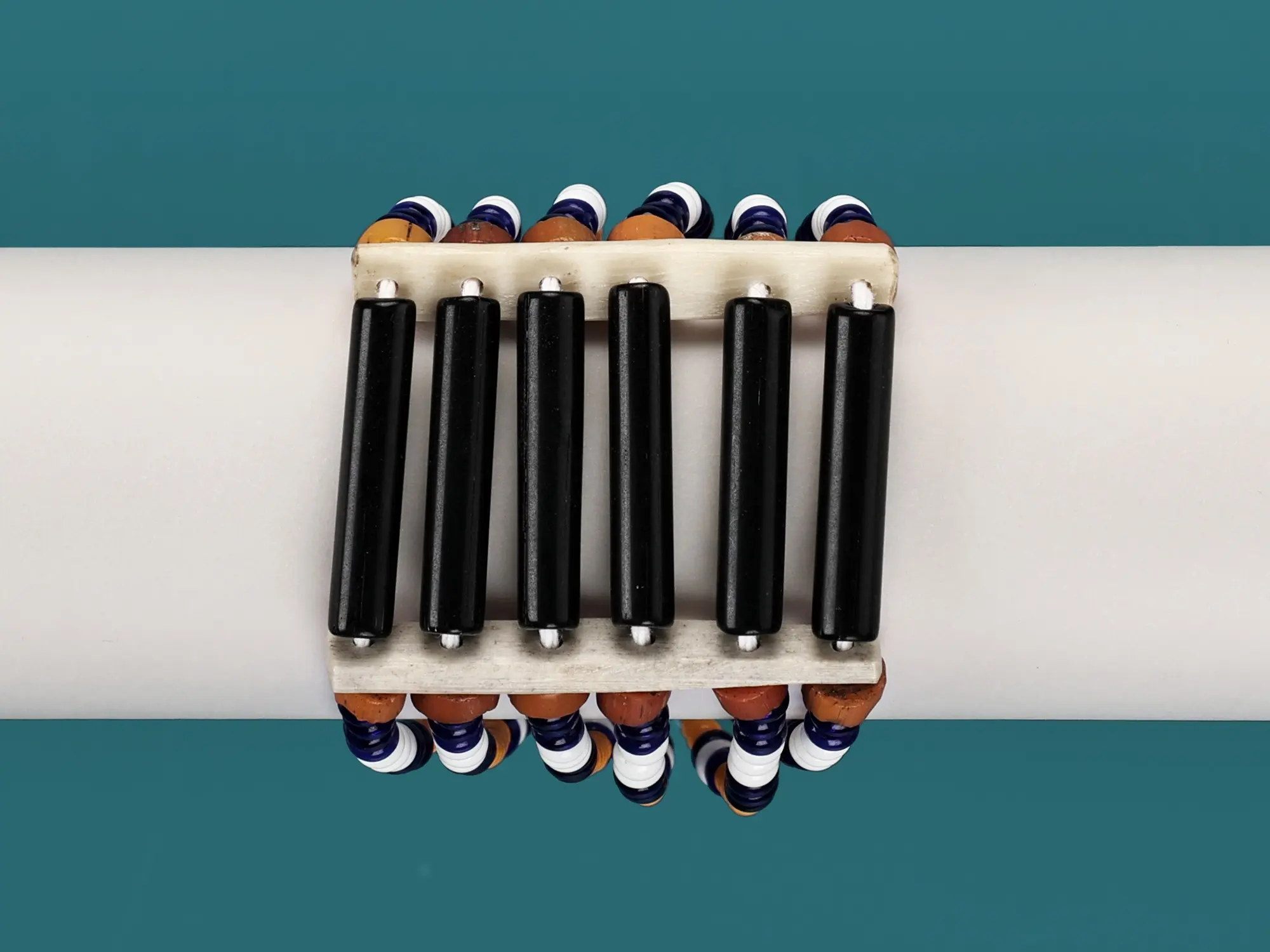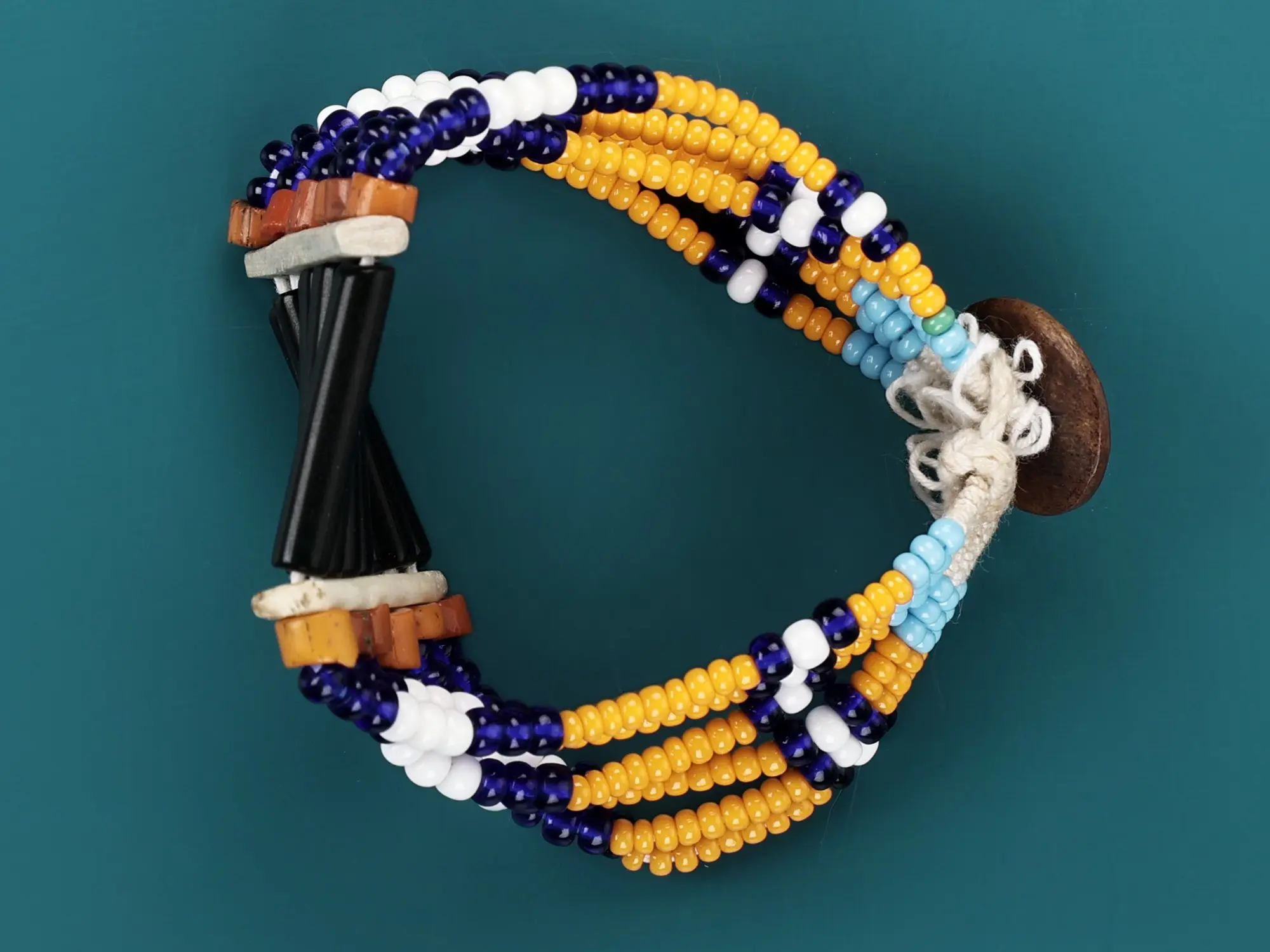 This bracelet is a seamless blend of tradition and modernity, where the rhythmic arrangement of colours captures the essence of Naga craftsmanship. The black, blue, and orange beads come together in perfect harmony, creating a bracelet that not only exudes sophistication but also holds profound cultural significance - brought to you from the Naga hills.