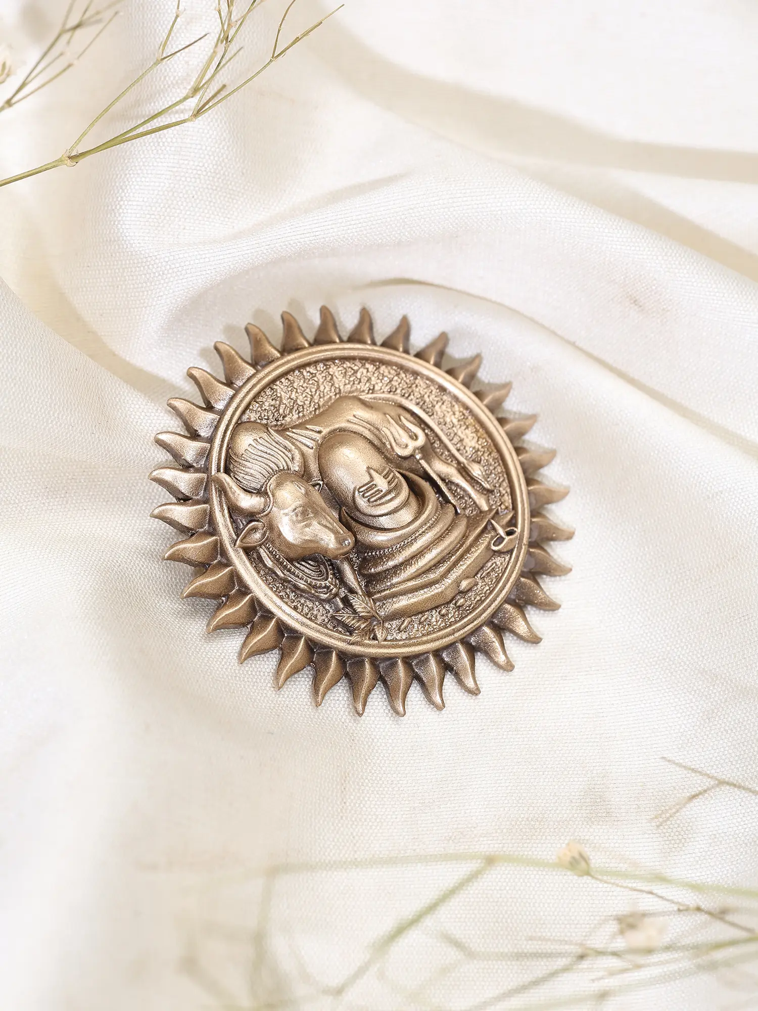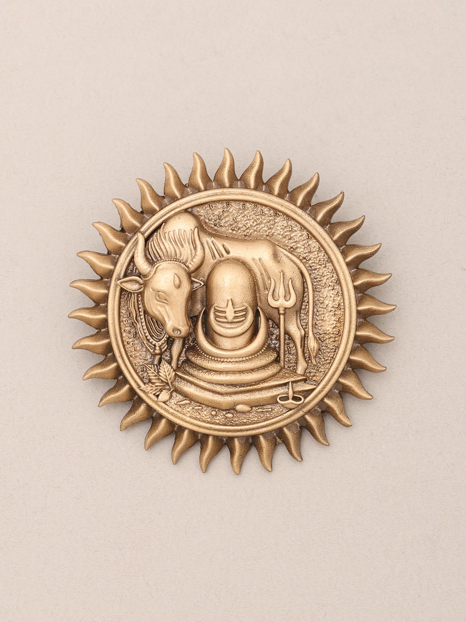 Nandi Shiva Linga in Surya Halo Brooch with Trishul Motif