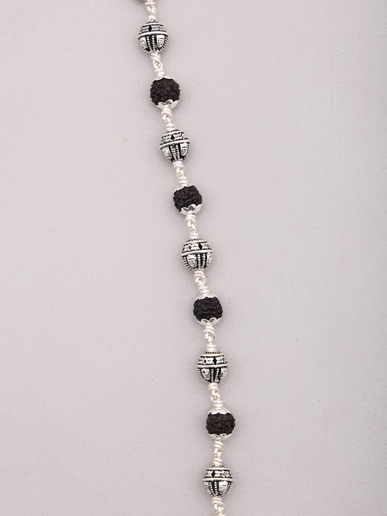 Natural Rudraksha Bead Mala Encased in Silver