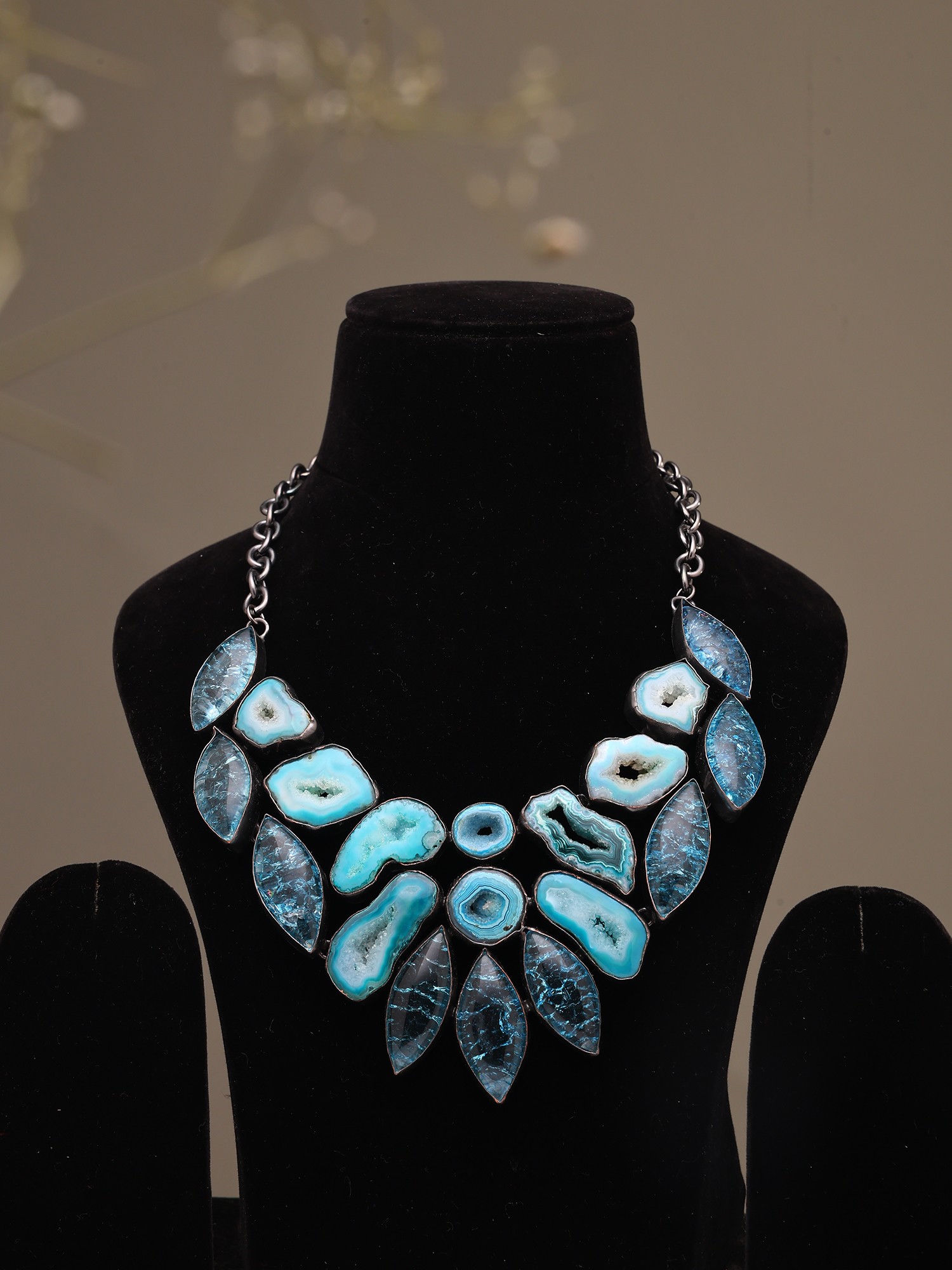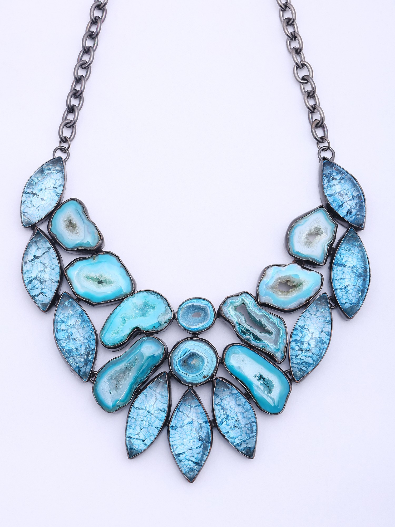 Oceanic Blue Stone Bib-Style Statement Necklace