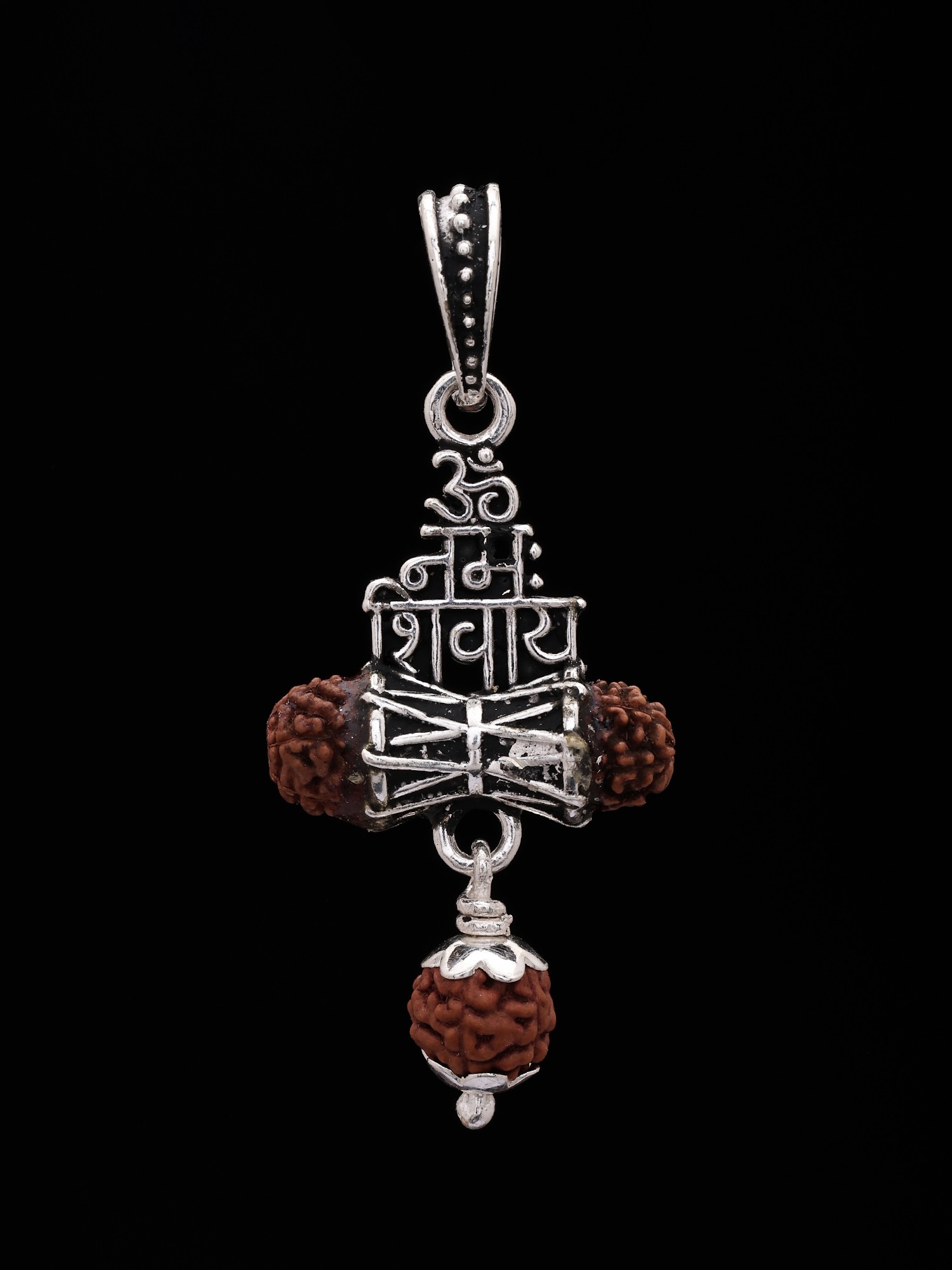Rudraksha Damru and Lord Shiva Third Eye Pendant