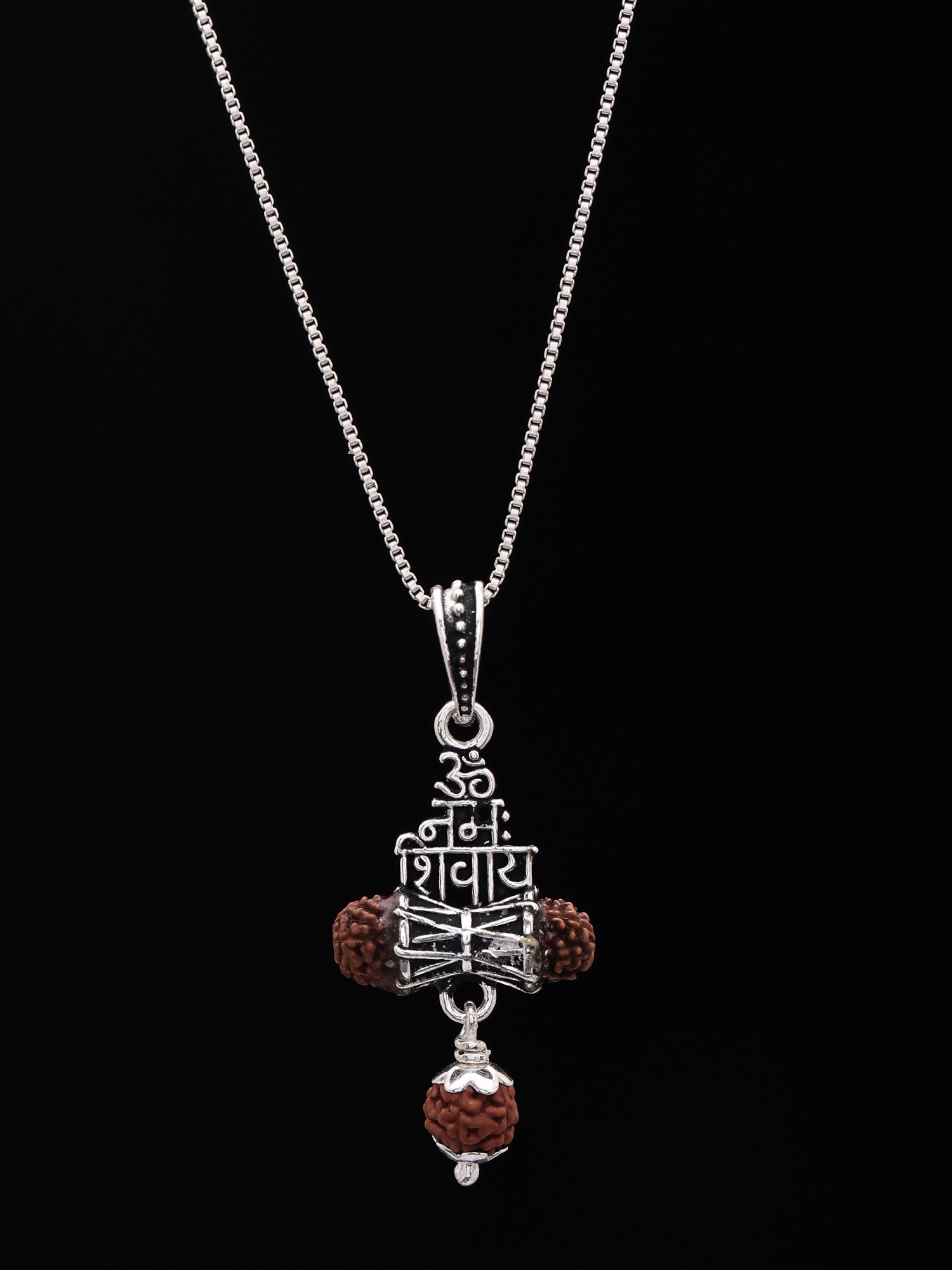 Shivalinga & Crescent Moon Silver Pendant with Rudraksha