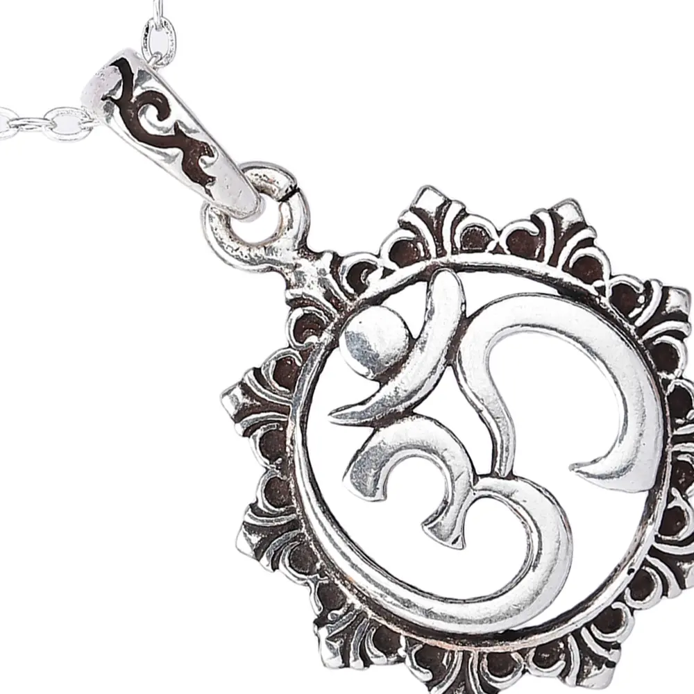This pendant is not only a profound symbol but also a striking piece of jewelry that complements any style. Its understated elegance makes it suitable for everyday wear, adding a touch of conscious style to your casual outfits. It also serves as a beautiful focal point for more formal occasions, reflecting your inner values and appreciation for spiritual aesthetics. The secure bail, designed to seamlessly integrate with the pendant's artistry, ensures it will hang gracefully from your favorite chain. Whether you are a devoted practitioner of yoga and meditation, or simply drawn to its profound symbolism and unique beauty, this Om Mandala pendant offers a tangible connection to ancient wisdom and serene energy. It’s a perfect gift for yourself or a loved one who cherishes mindful living and appreciates the beauty of artisanal jewelry.