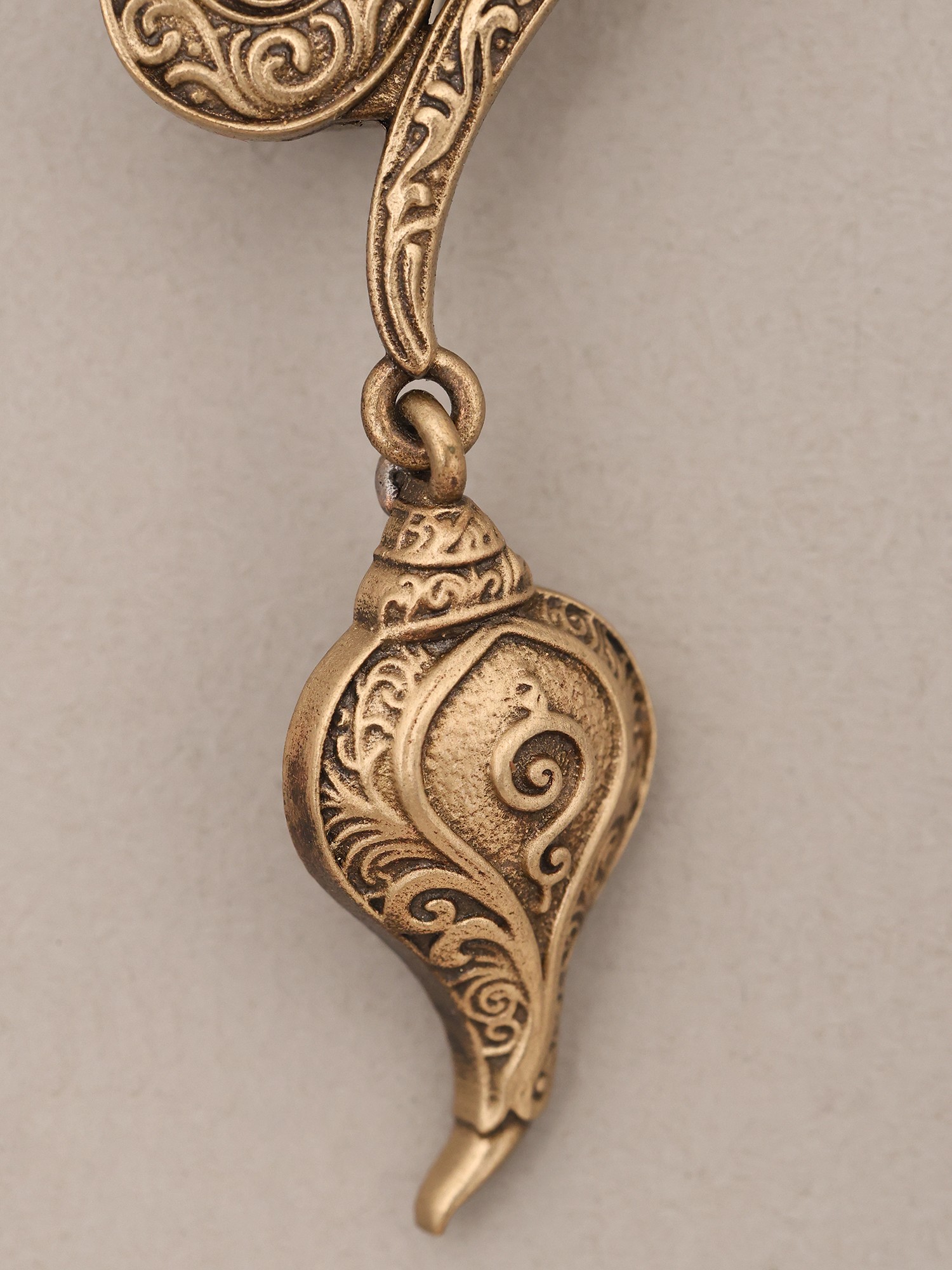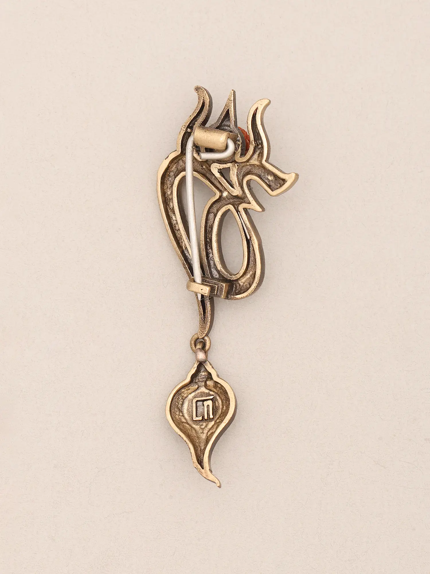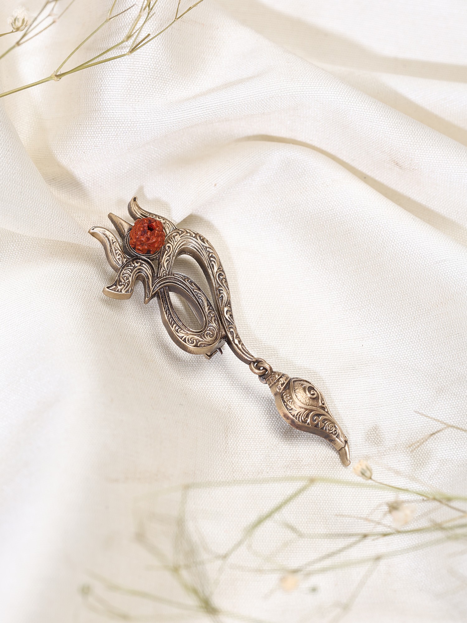 Om Trishul Rudraksha Brass Brooch with Shankh Dangle