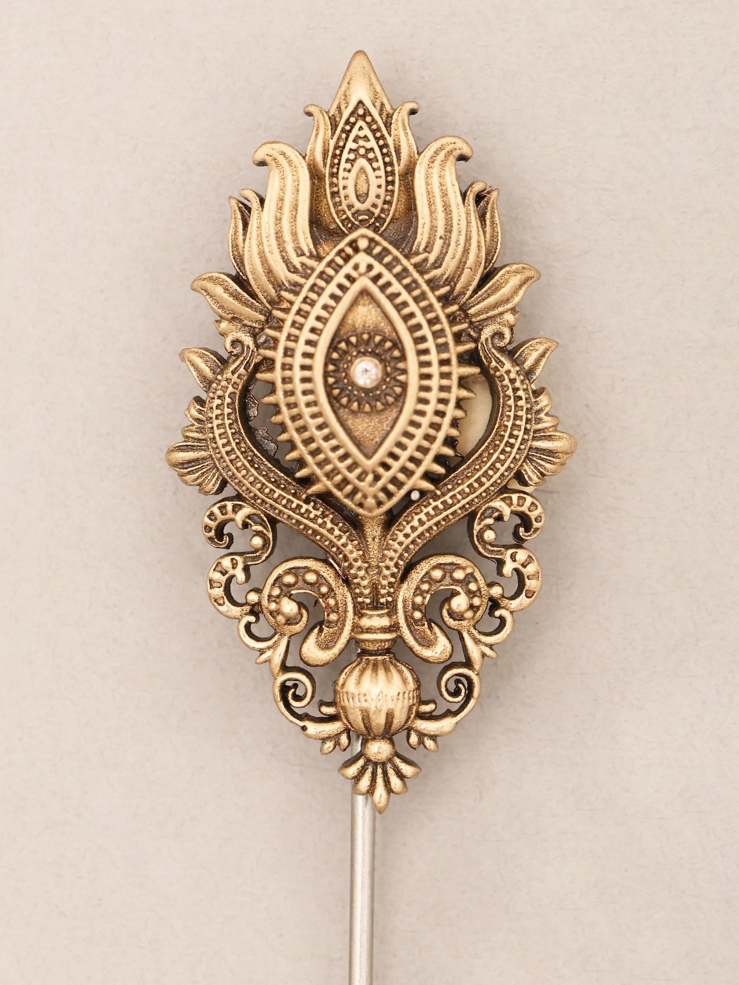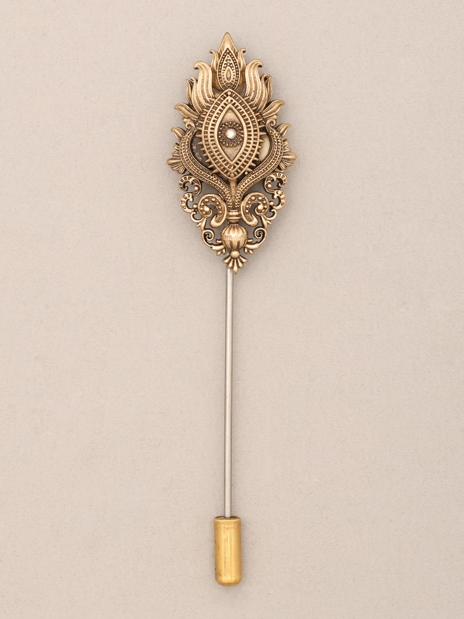 Ornate Third Eye Motif Brass Lapel Stick Pin Brooch