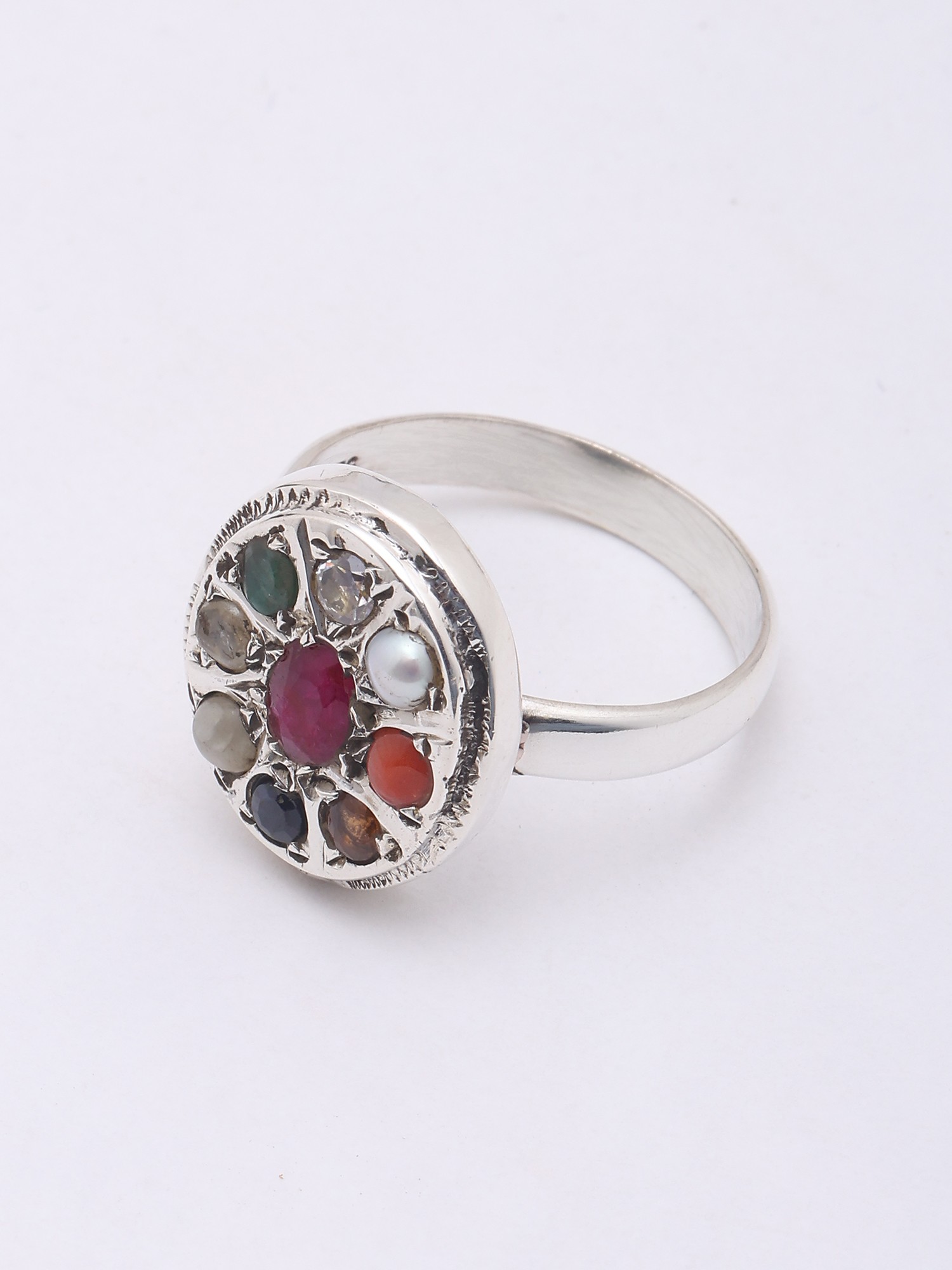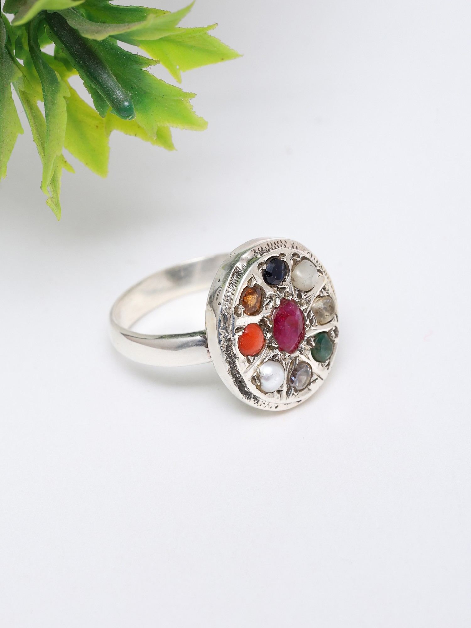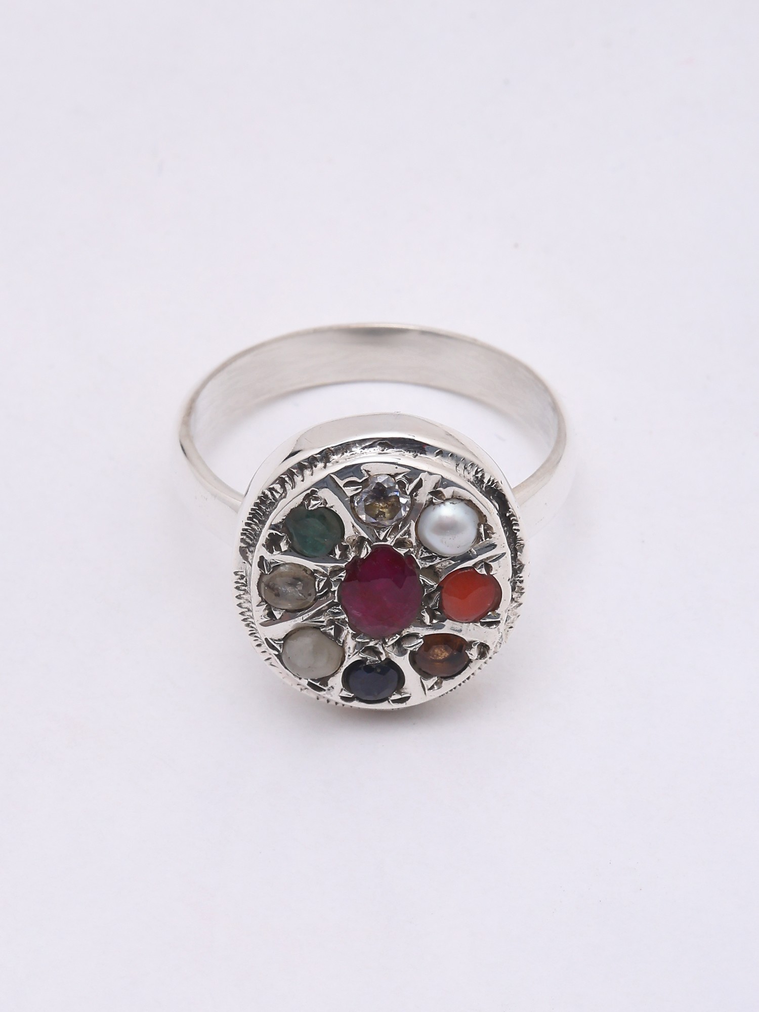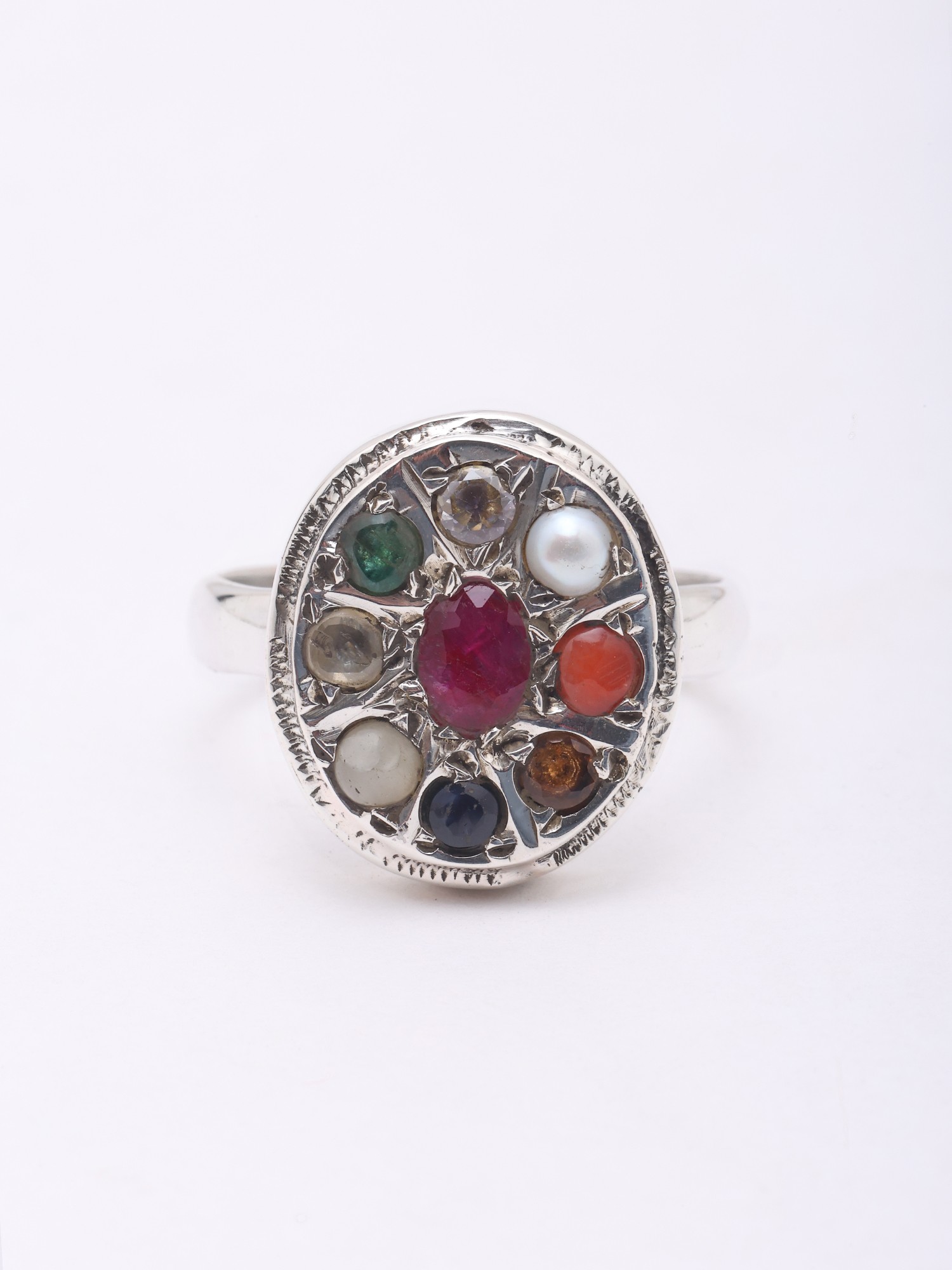 Kite Shape Sterling Silver Bracelet with Navaratna