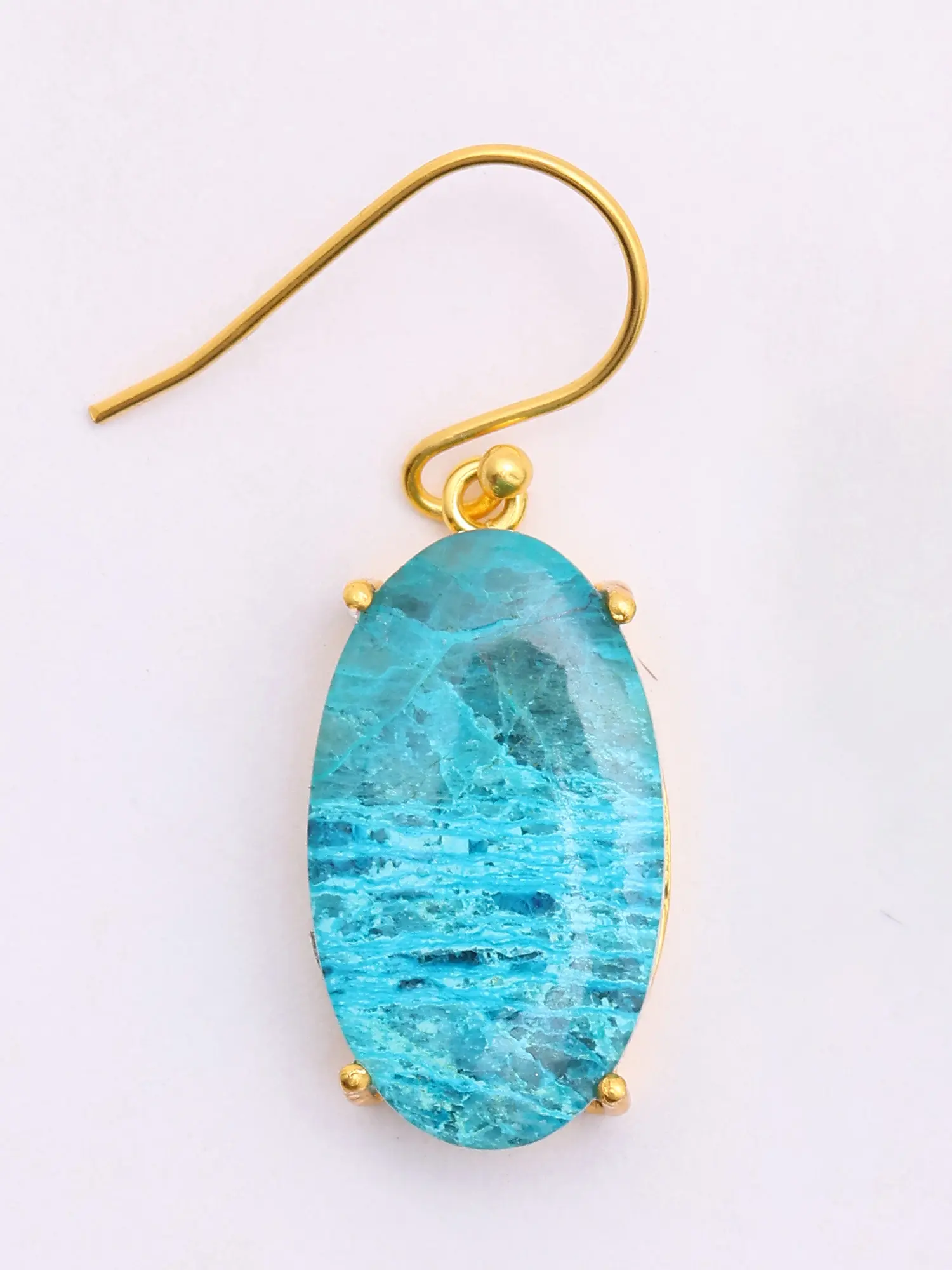 Dangle Round-Shaped Turquoise Stone Earrings with Small Heart Details