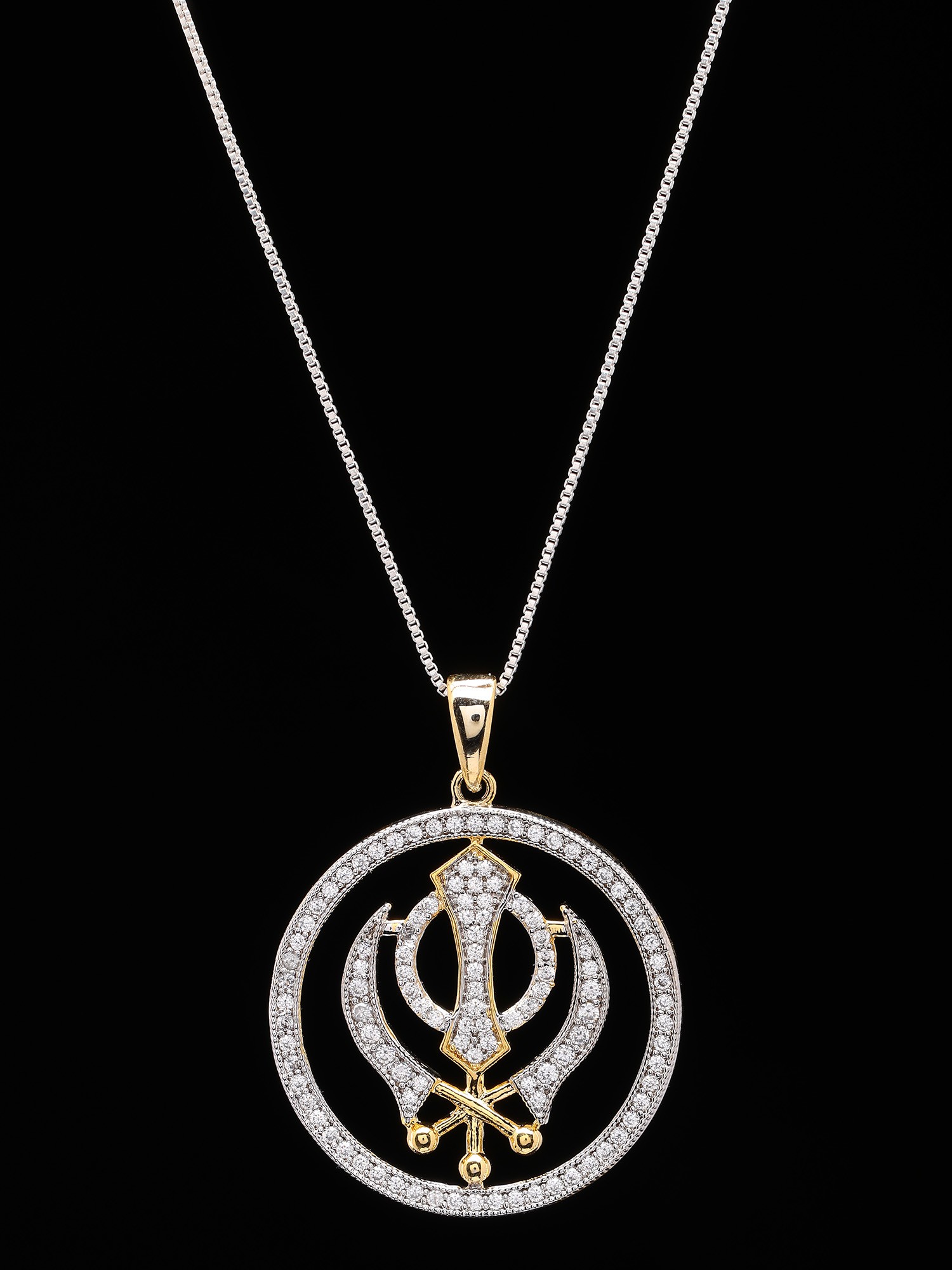 Adorn yourself with a powerful emblem of Sikh identity. This exquisitely crafted pendant features the revered Khanda, a central symbol in Sikhism, representing the core principles of the faith. It's a piece that speaks volumes, expressing your devotion and connection to a rich cultural heritage. Wear it with pride, knowing you carry a symbol that embodies courage, compassion, and righteousness.