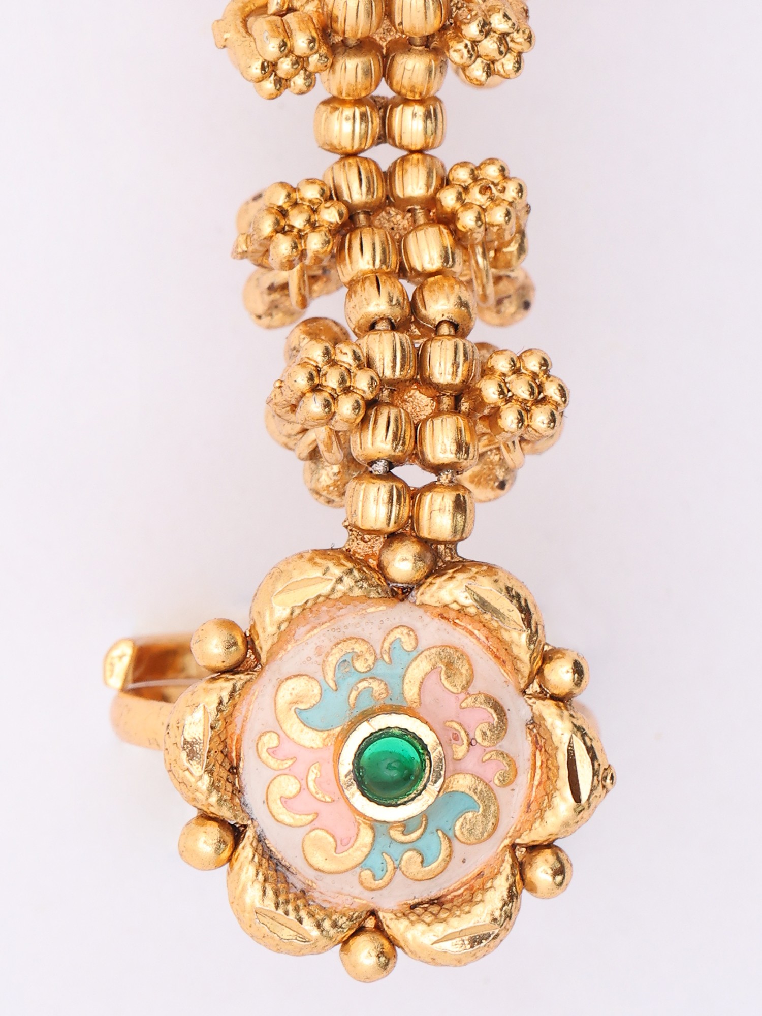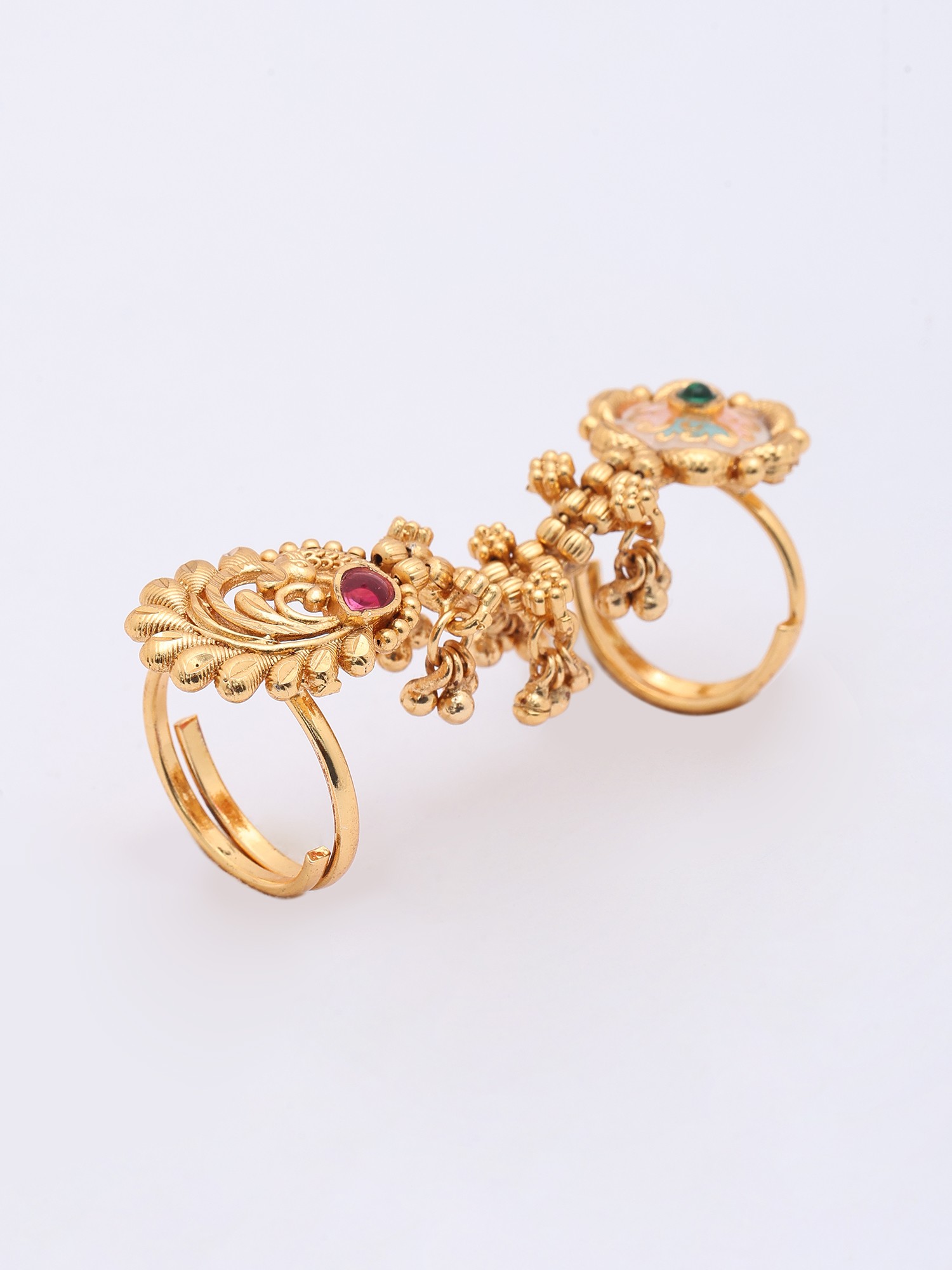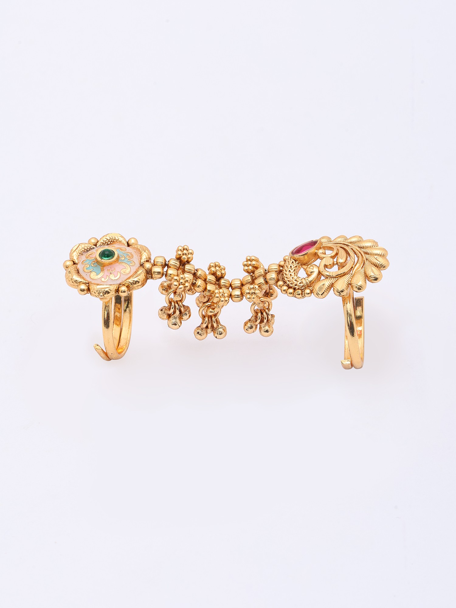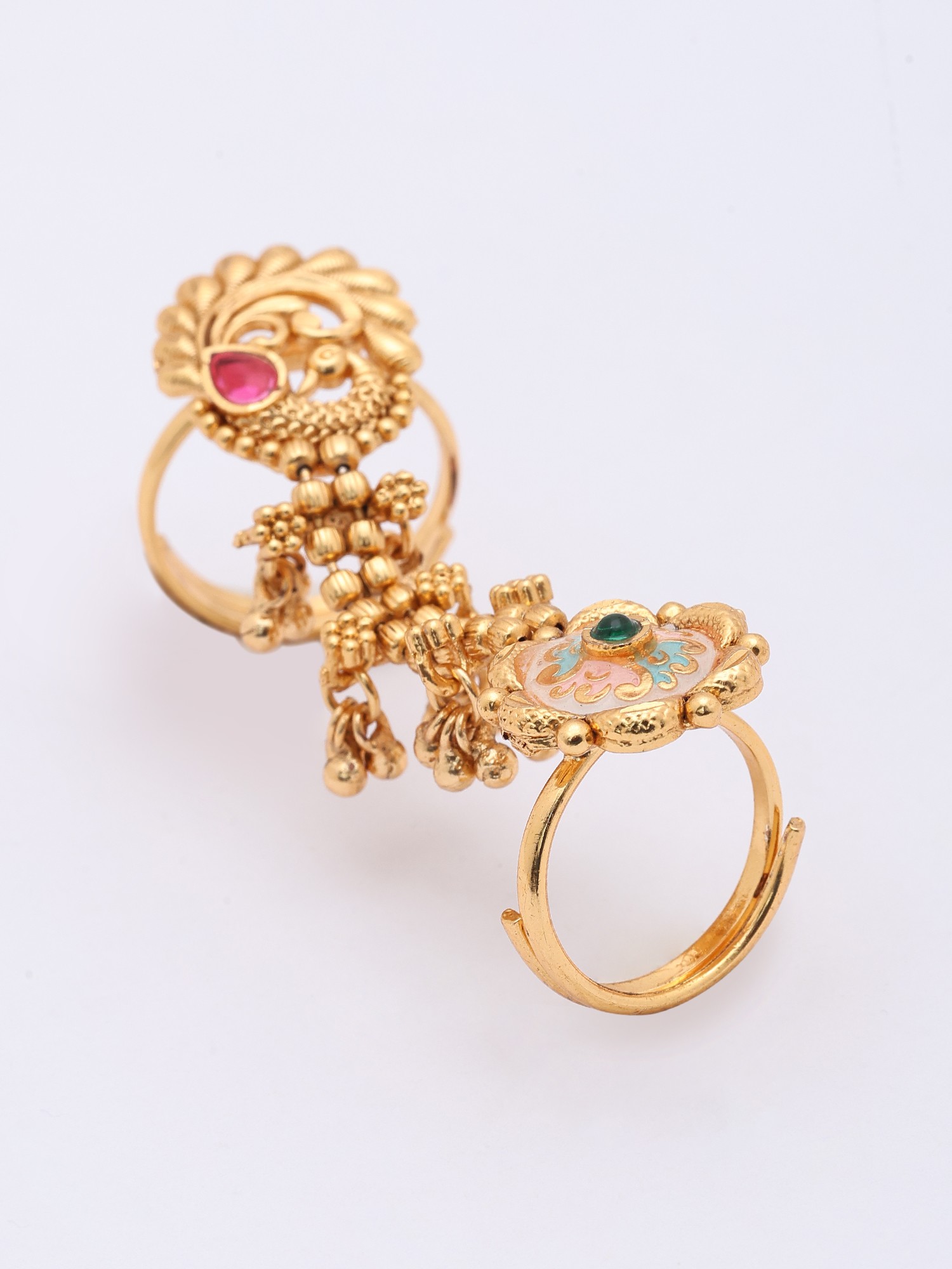 Floral Meenakari Adjustable Long Finger Ring (Double Ring)