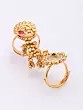 Dual Band Long Finger Ring with Floral Motif and Embellishments