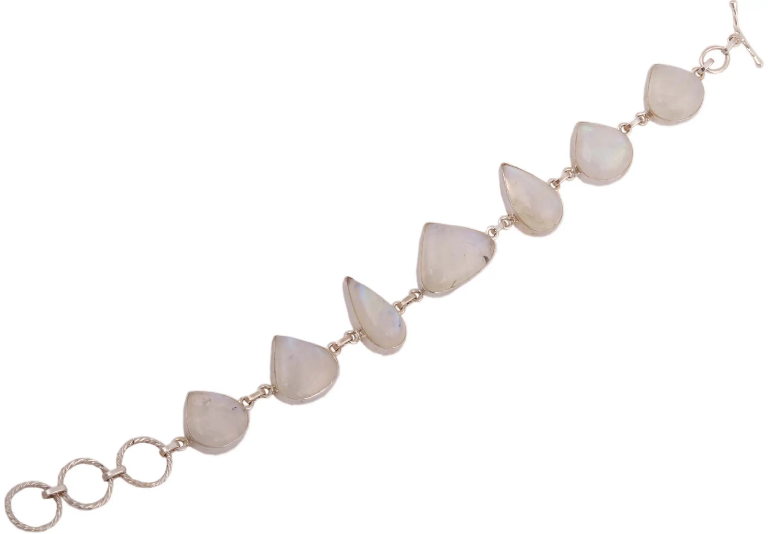 As the ruler of the heavens, Indra is also associated with the rainbow. While his iconography suggests that he killed Vritra with a thunderbolt, he is also depicted as wielding a rainbow. This Pear-Cut and Trillion Rainbow Moonstone Bracelet capture the charm and the rainbow, most especially it’s quiet build-up from the lightest shades towards its iconic multicolored form. The Trillion Rainbow Moonstone gem catches showcases the colors of light at the right angle but its mostly neutral finish makes it easy to pair with almost any clothing style. Likewise, it also lends an elegant touch to formal wear thanks to its sterling silver base and band.