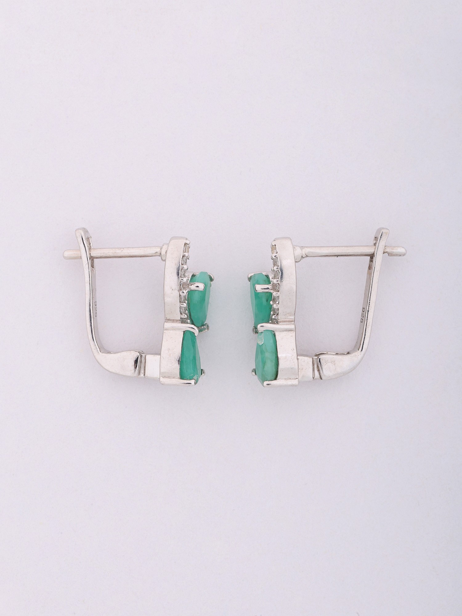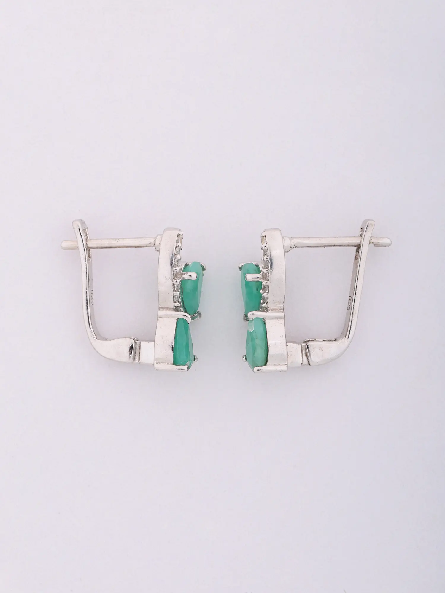 Sterling Silver Diamond Shaped Earrings with Faceted Emeralds