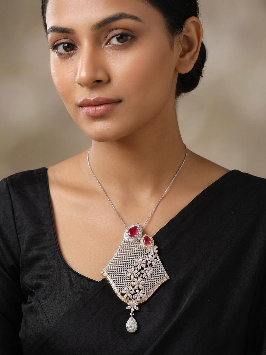 American Diamond Set Stylish Stone Studded Pendant With Earrings