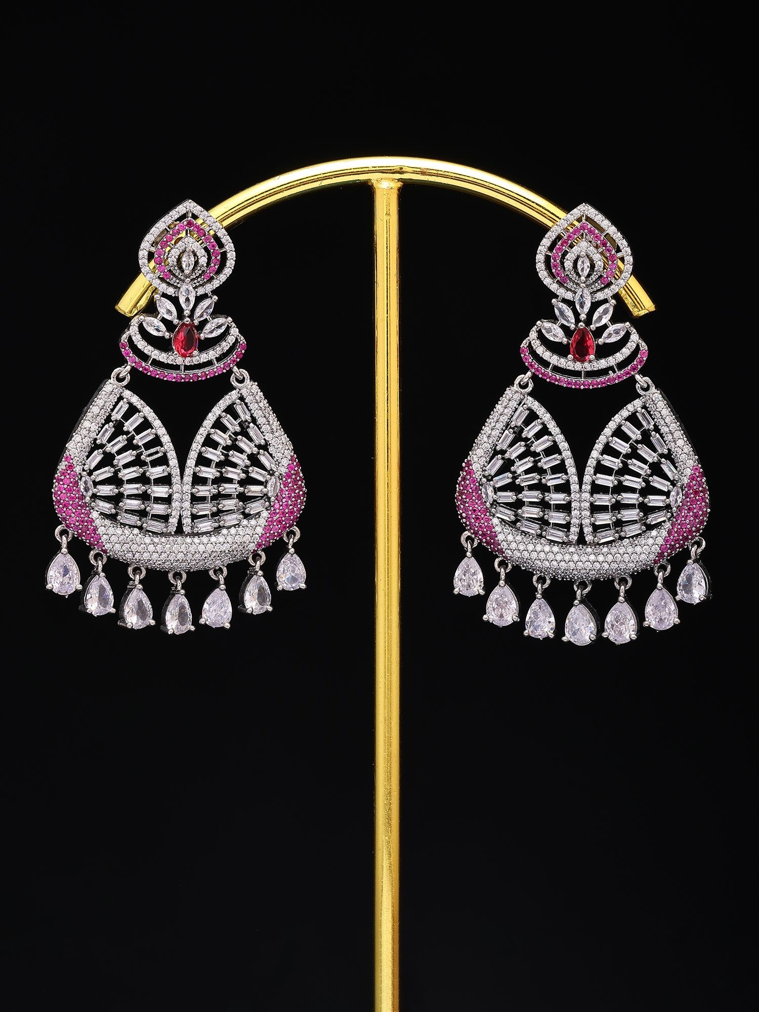 Pink and White Zircon Stone Chandelier Earrings