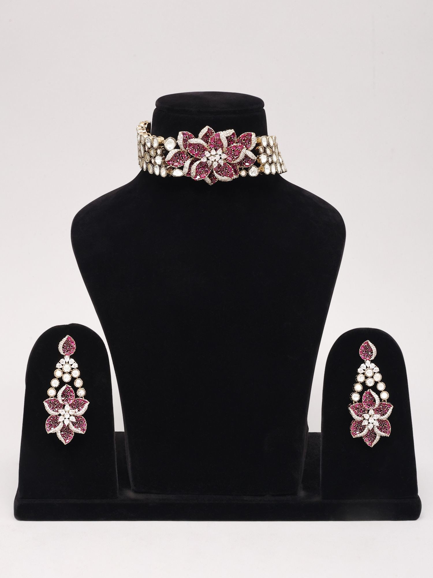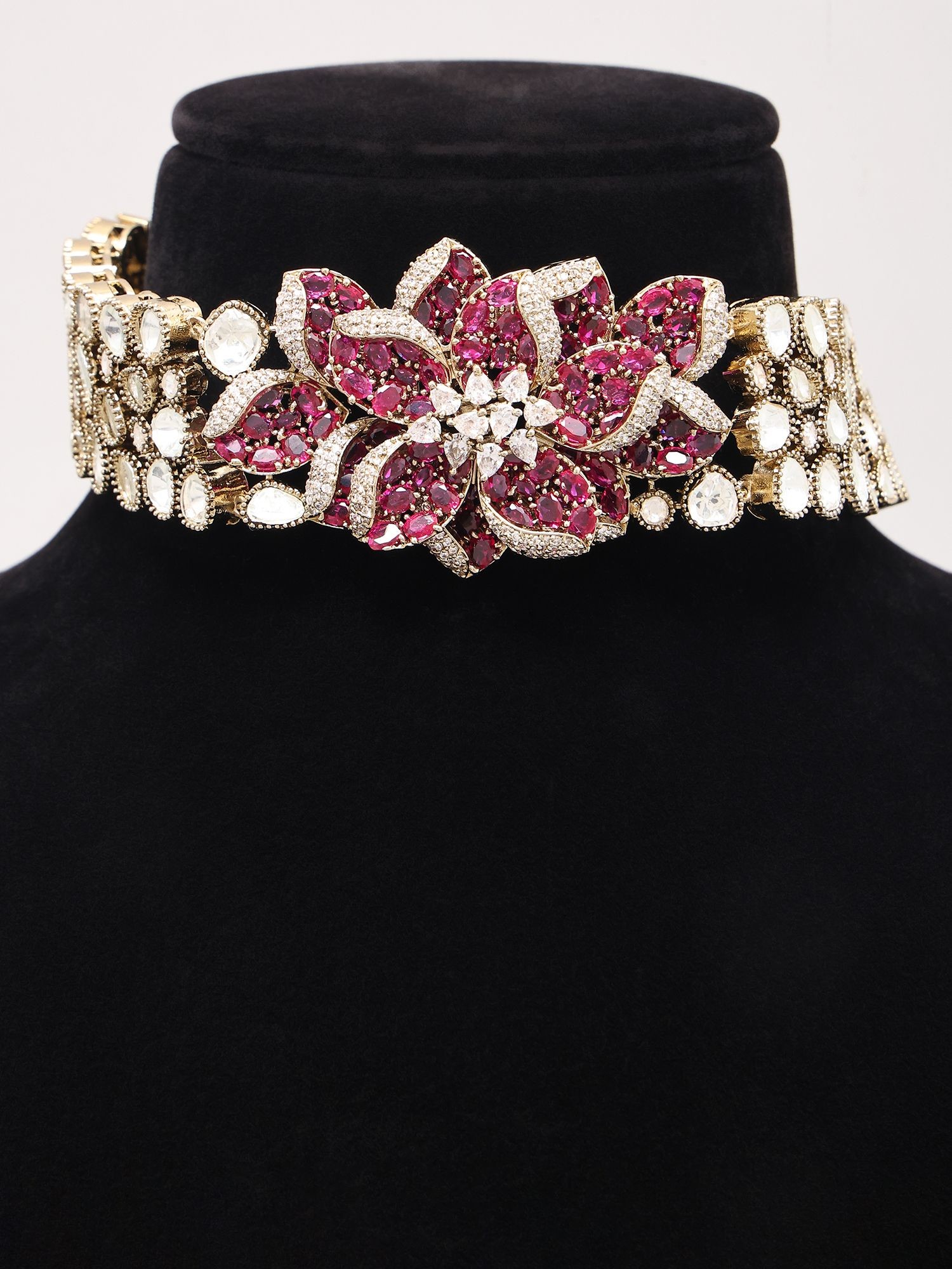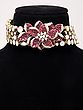 Pink Floral Stone Studded Kundan Choker Set with Earrings