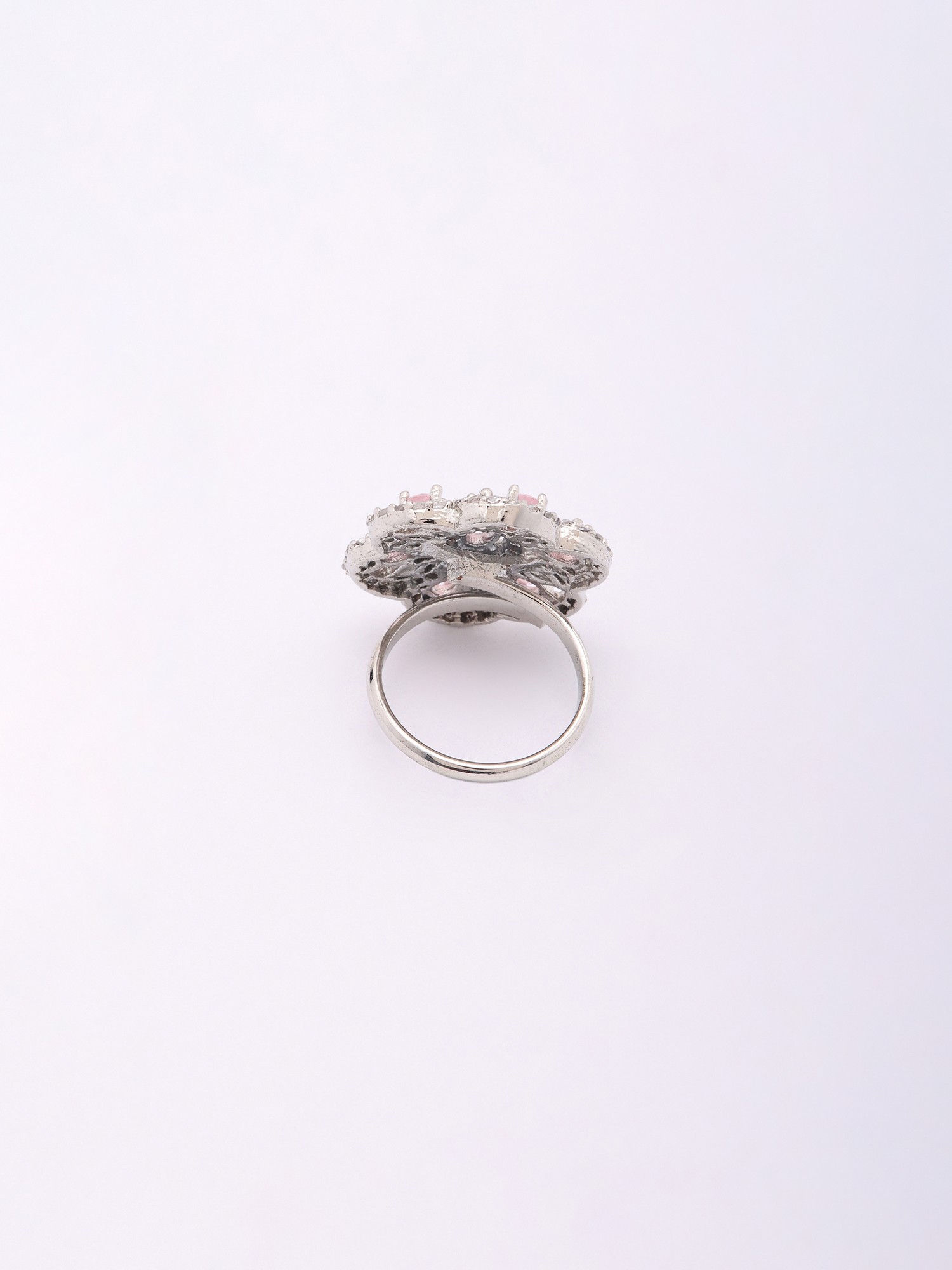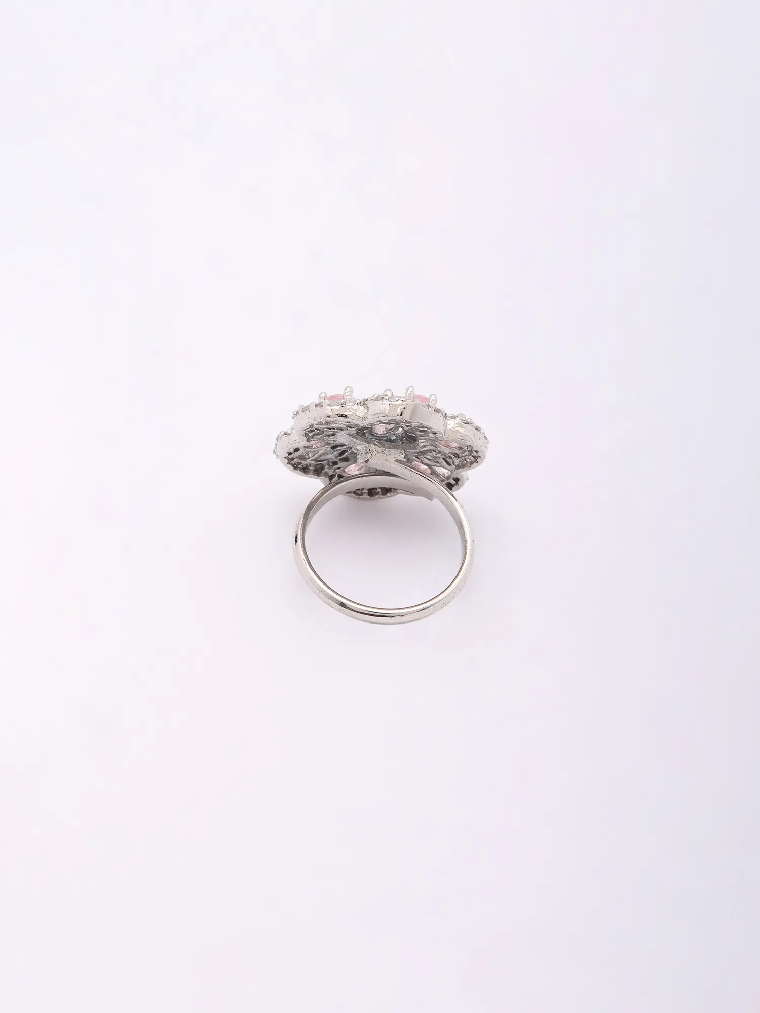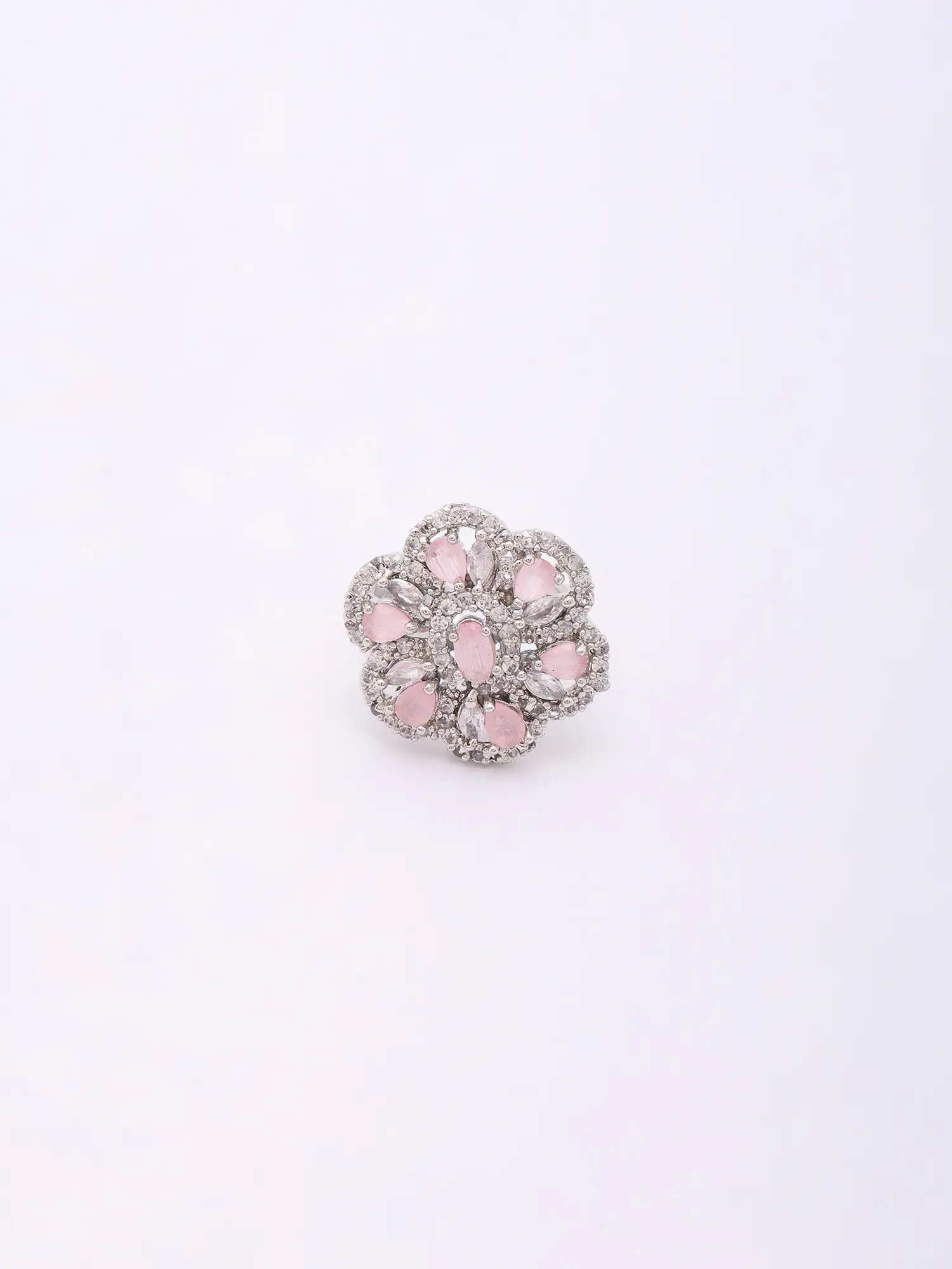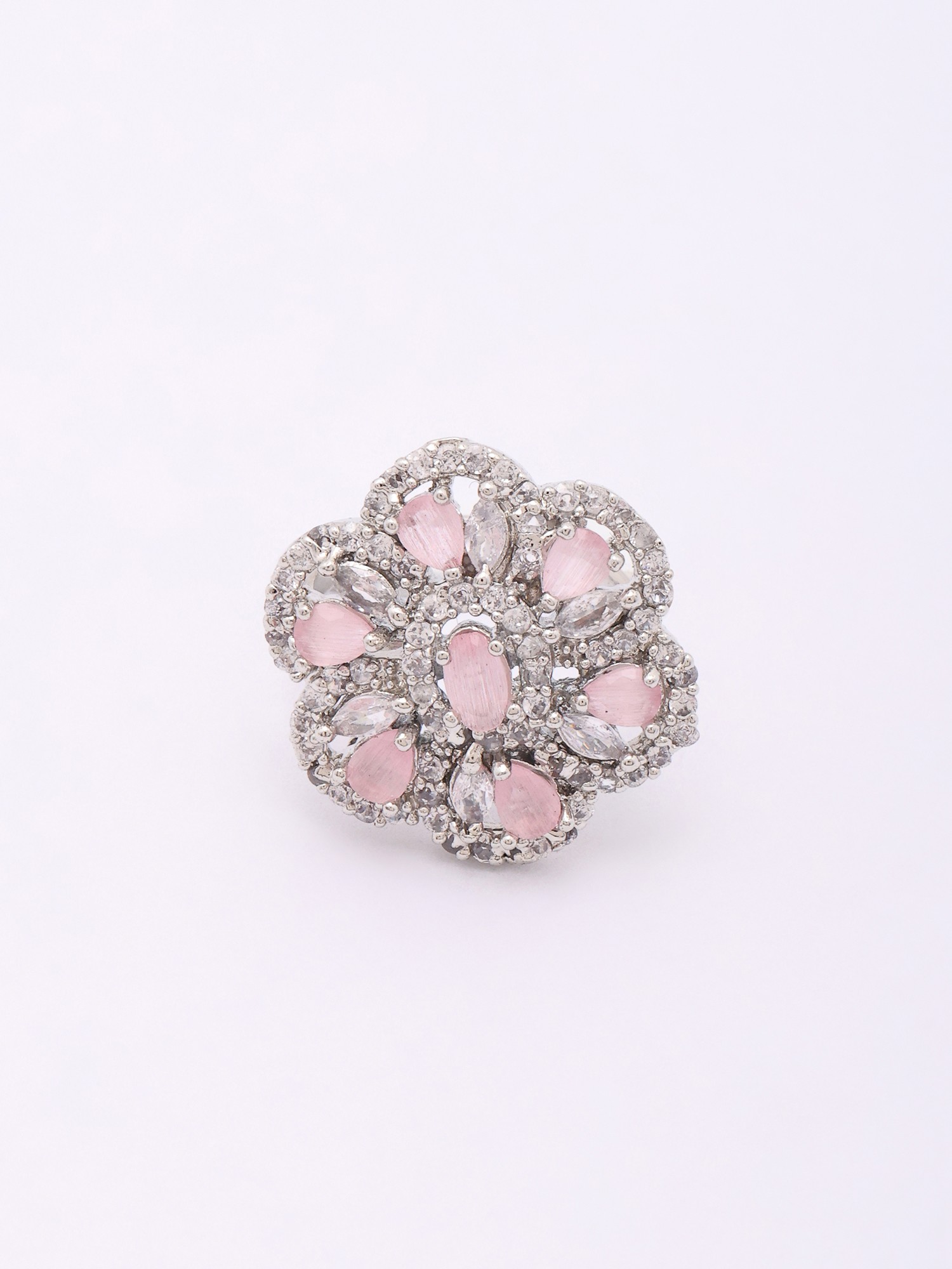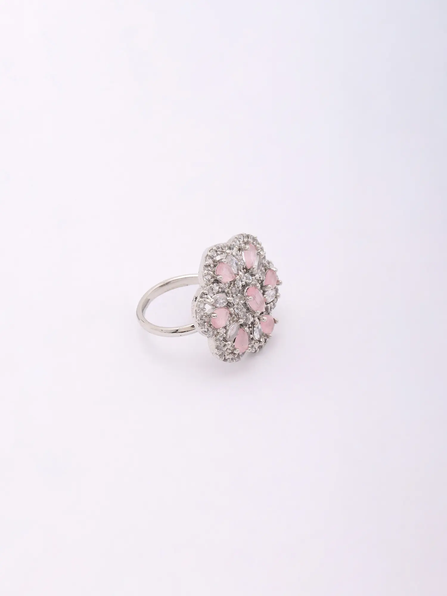 Pink Stone Studded Adjustable American-Diamond Statement Ring